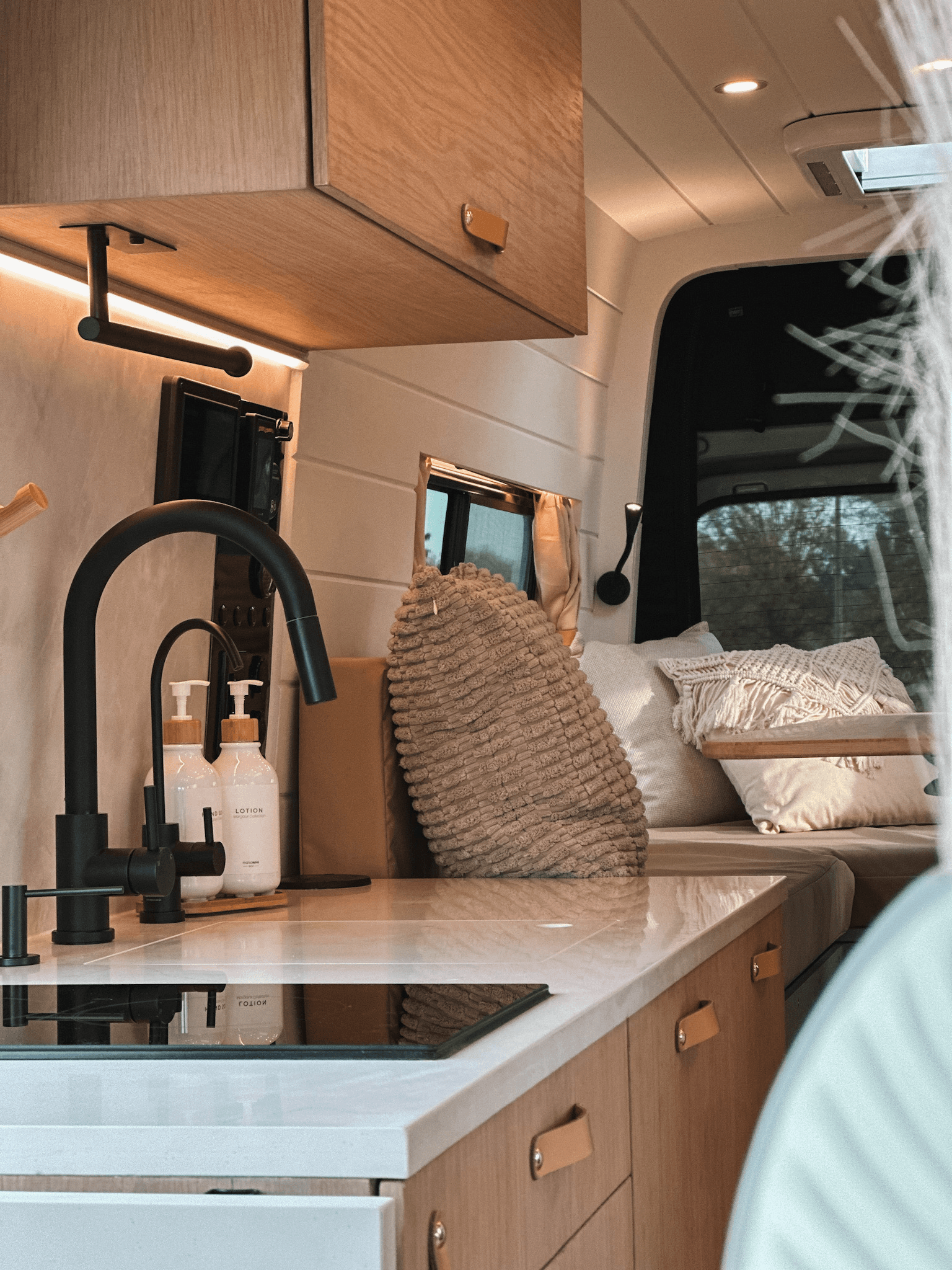Our vans are equipped with features such as heated floors, a hot shower, a comfortable toilet, 12V AC, a powerful 12V electrical system with solar panels, off-road exterior upgrades, and a fully equipped kitchen with a dishwasher, 12V fridge, induction cooktop, air fryer, and other amenities. This comprehensive suite of features ensures that every aspect of your journey is covered, whether you’re exploring remote areas or enjoying a luxurious stay.