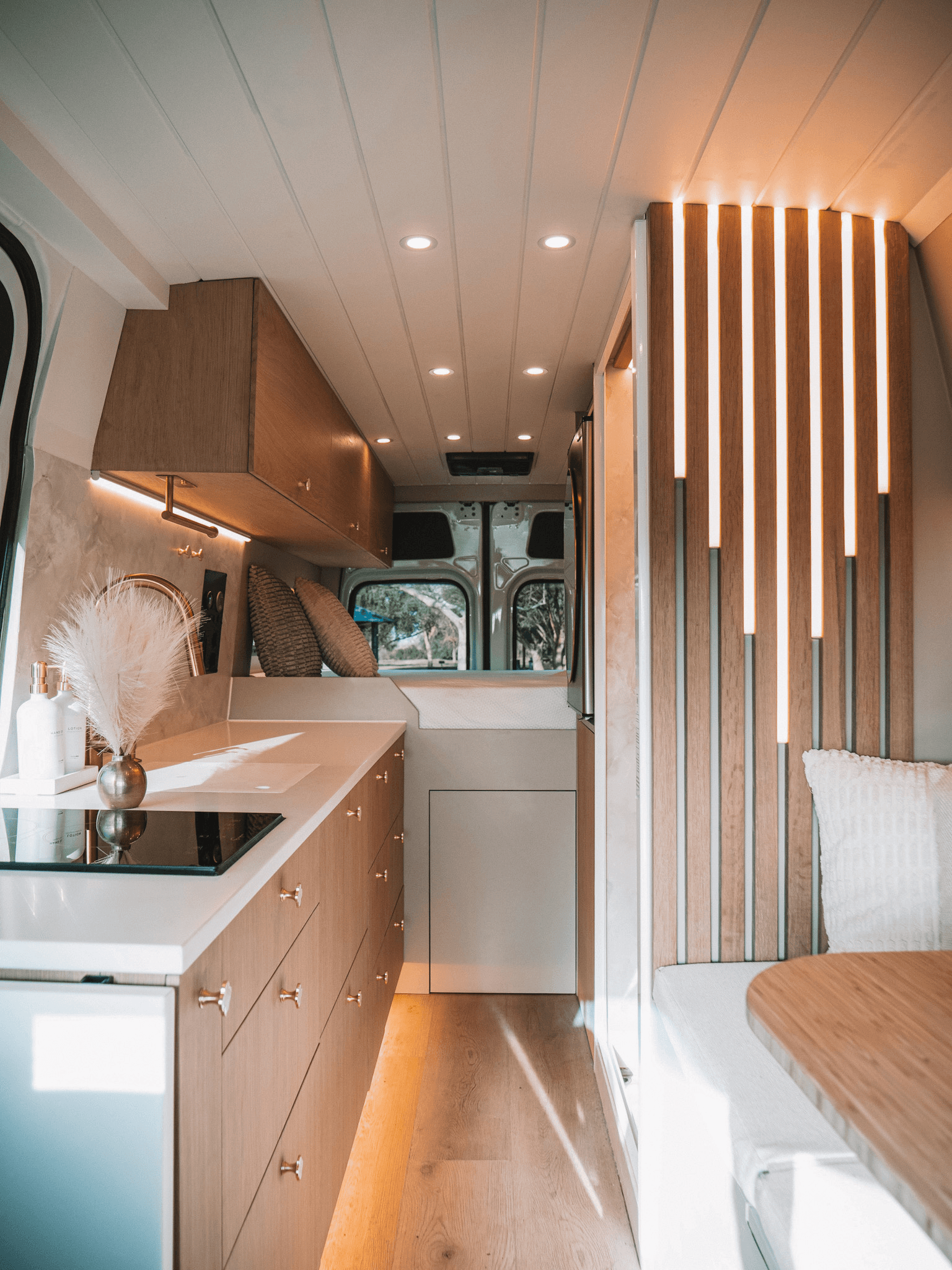 What truly sets us apart is our commitment to sophisticated, thoughtful design. Having lived in a van full-time, we know firsthand what works and what doesn’t. We avoid adding features that merely look good but serve no practical purpose. Our vans are built with both elegance and functionality in mind, ensuring that every aspect is designed to enhance the travel experience.