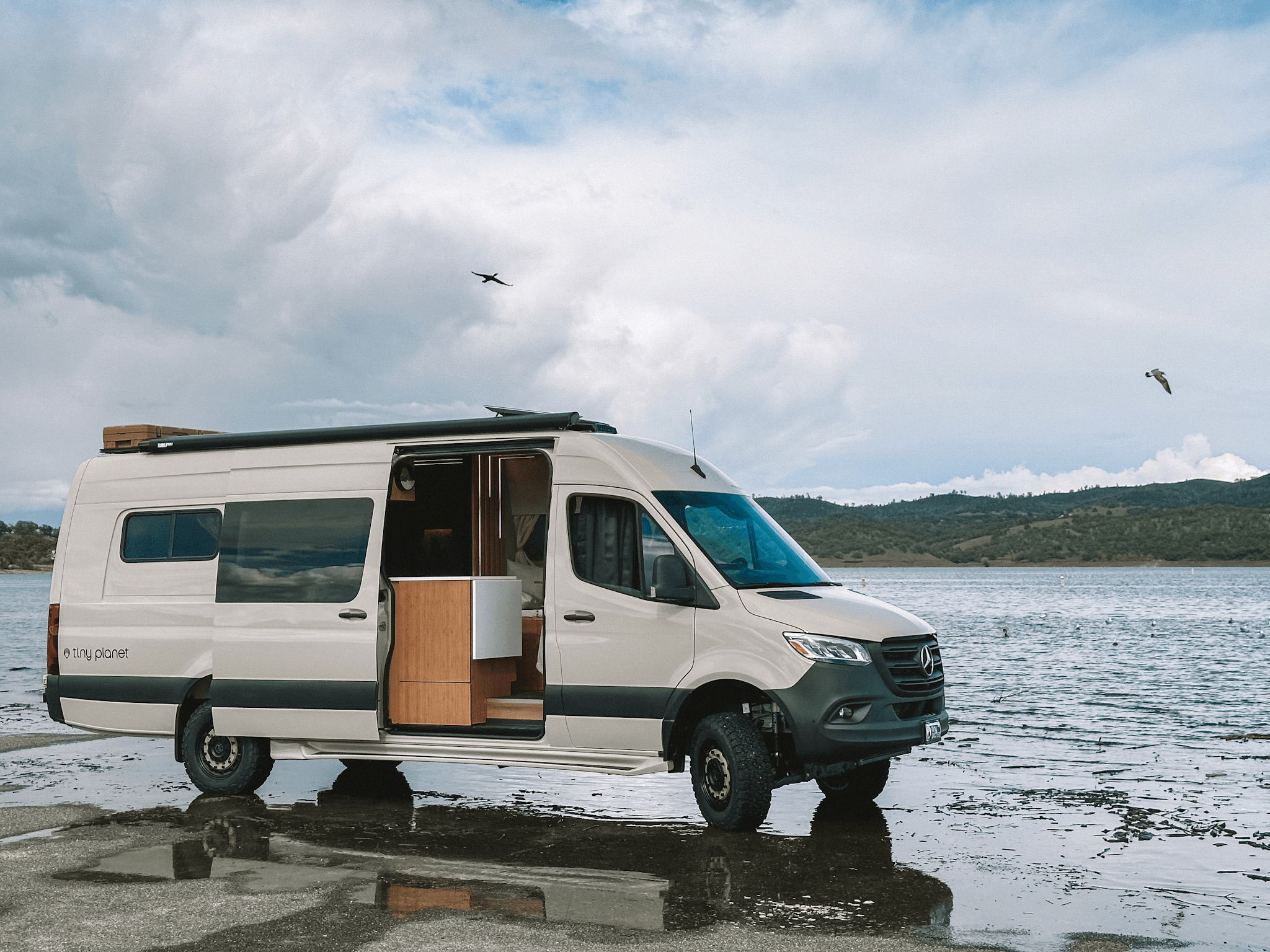 My name is Denis, and together with my wife Sofia, I co-founded Tiny Planet. Our journey began in 2021 when we came to the USA from Europe with a dream to create exceptional travel experiences. We built our first van in the garage of a friend in Los Angeles, spending 2.5 months designing and perfecting it. This van had everything for a comfortable road trip—a hot indoor shower, a comfortable toilet, induction cooktop, and more. It garnered so much praise during our travels that we decided to share it with a wider audience.