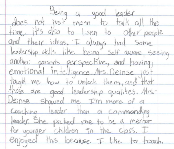 Just last week, a letter popped up in my inbox. It was a middle school admissions application essay responding to a prompt, ‘Describe a leader.”