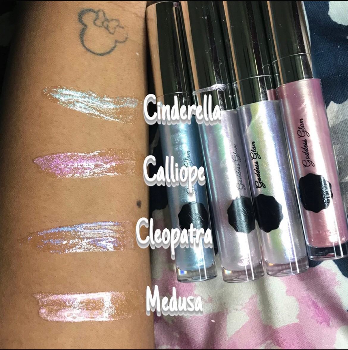 My first client was actually my mom. I had been making lipglosses of all colors for months and labeling trying to figure out names to incorporate with “Goddesses” and once we finally launched she bought one of each color to help promote the business “grand opening”.