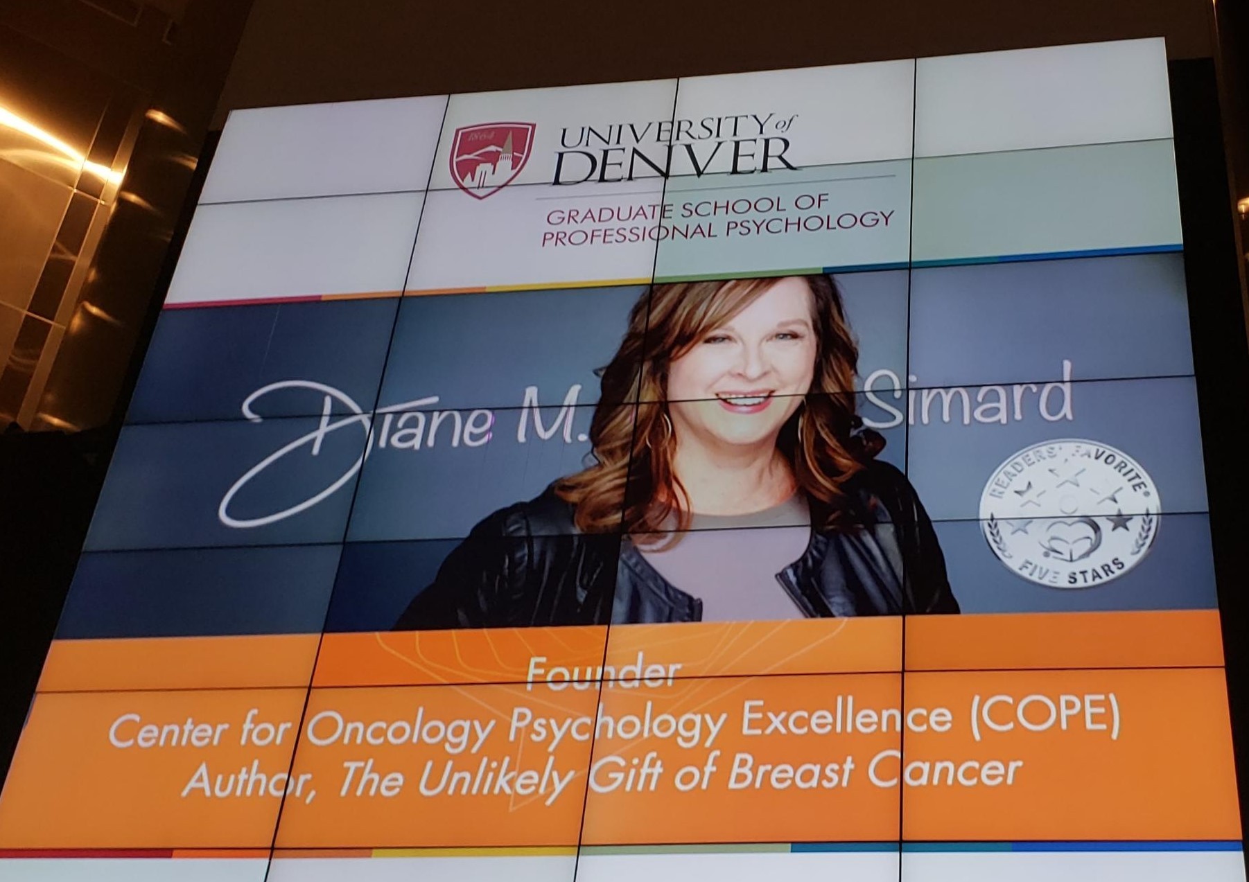 Two months after my treatment was over, representatives from the University of Denver’s Graduate School of Professional Psychology announced at a public launch event the night before my one-year anniversary as a cancer survivor that I had seed-funded and was the founder of a new specialty. It is called the Center for Oncology Psychology Excellence (COPE), the first of its kind at the graduate level in the entire country. That same month I began writing the manuscript for my multiple award-winning book, The Unlikely Gift of Breast Cancer, ultimately named one of the best breast cancer books of all time by Book Authority.