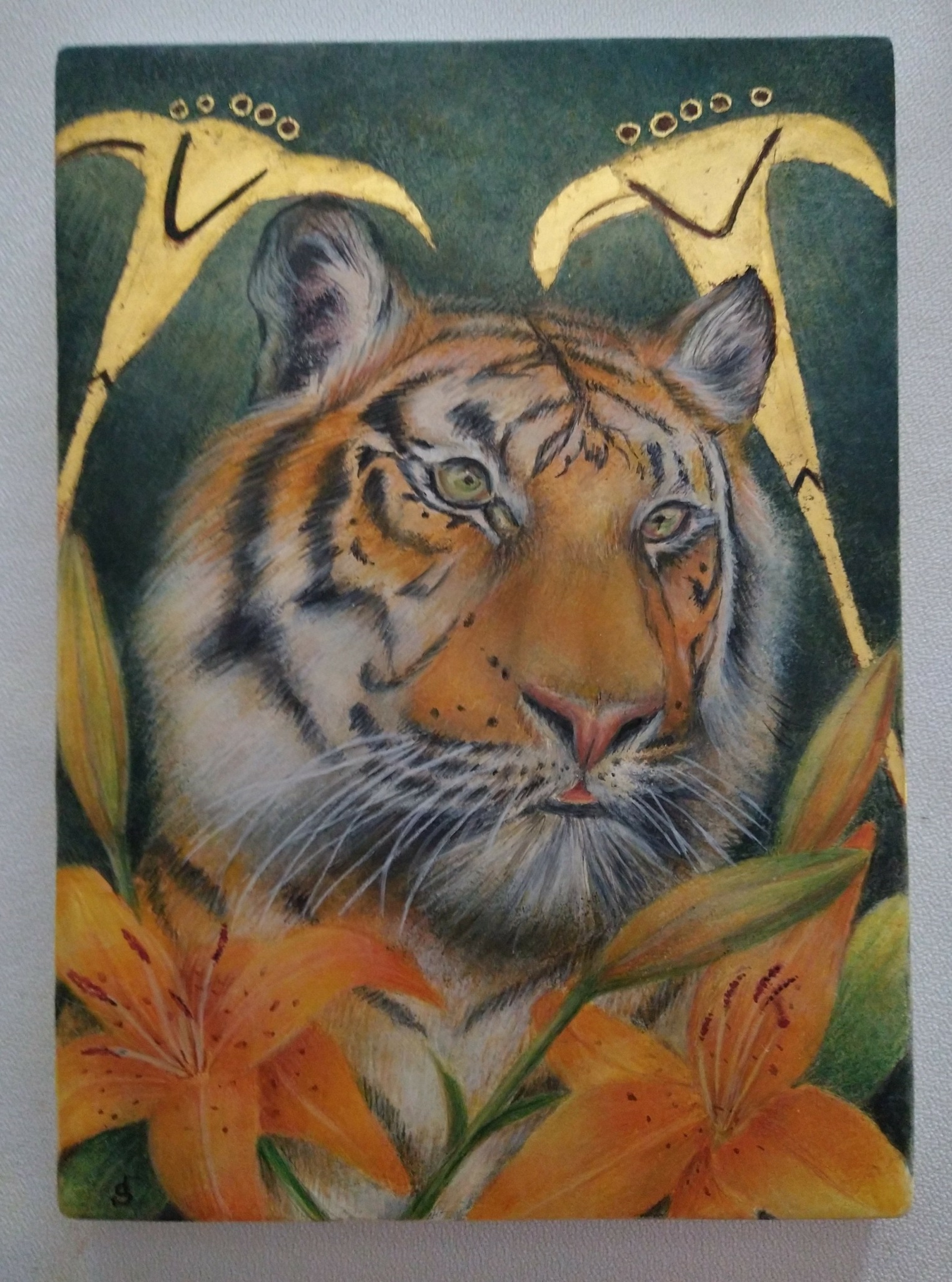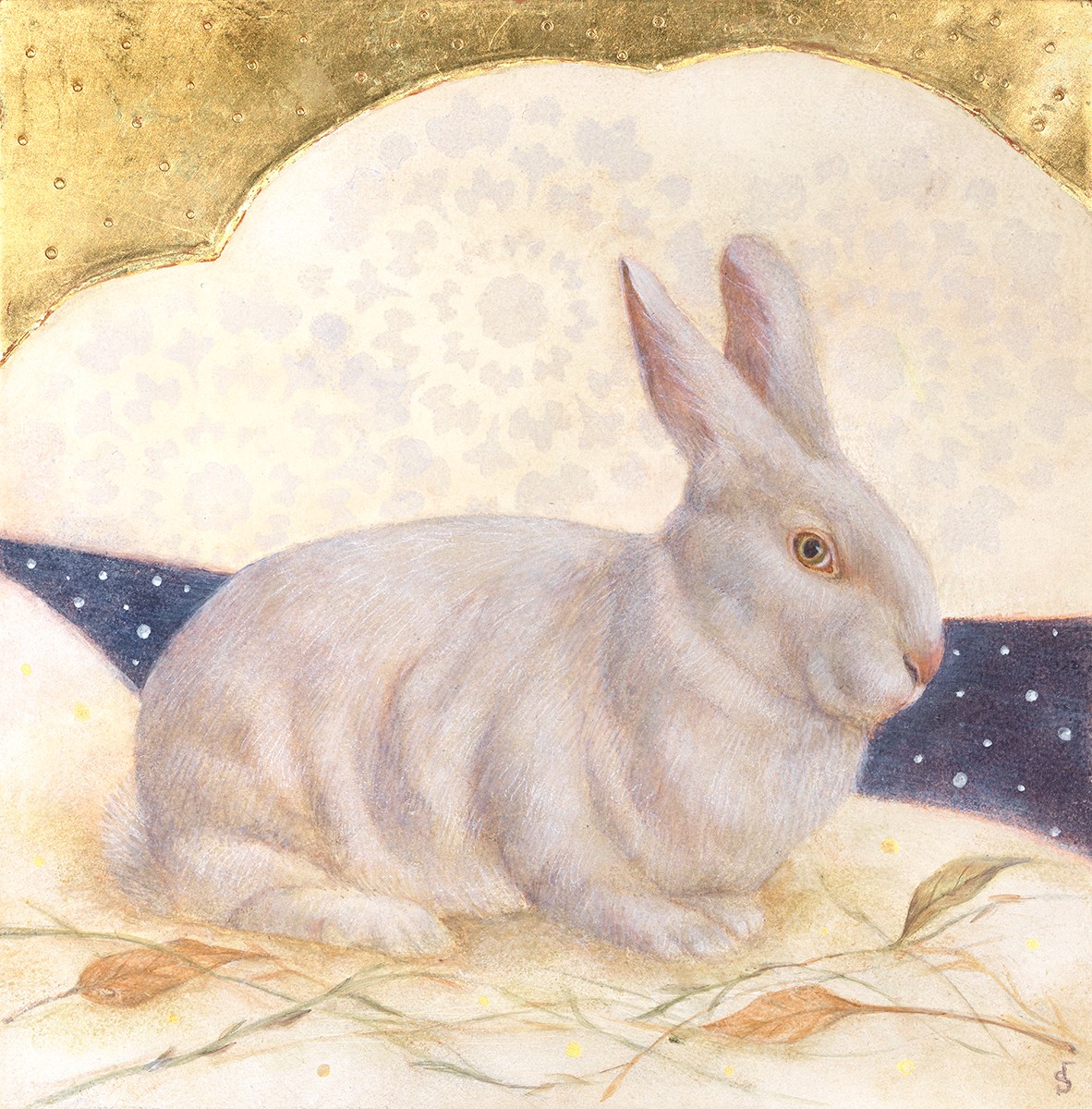As I developed as an artist in undergraduate school at Westfield State College, Westfield, MA, and later as a graduate student at The Hartford Art School and Vermont College of Norwich University, VT, I was searching for a means of identification with my Italian culture. It wasn’t until I saw a brilliant exhibit of egg tempera and gold leaf paintings by artist Fred Wessel, that I saw the potential of new media. My love of the Renaissance narrative painters, the rich color palettes, and the light reflected from gilding enticed me to learn new working methods. Finally, themes started to gel, and I relied on my memories of the garden paradises nurtured by my grandfathers. Vegetation and animals that rose from the woods began to appear in my artwork. This created an authentic artistic voice to give my work credence. Although I veer towards realism in my work, I think what sets my work apart is that I also include images from my imagination. This is where storytelling comes into play. I also like the Renaissance’s shallow use of space and use this as a contemporary format.