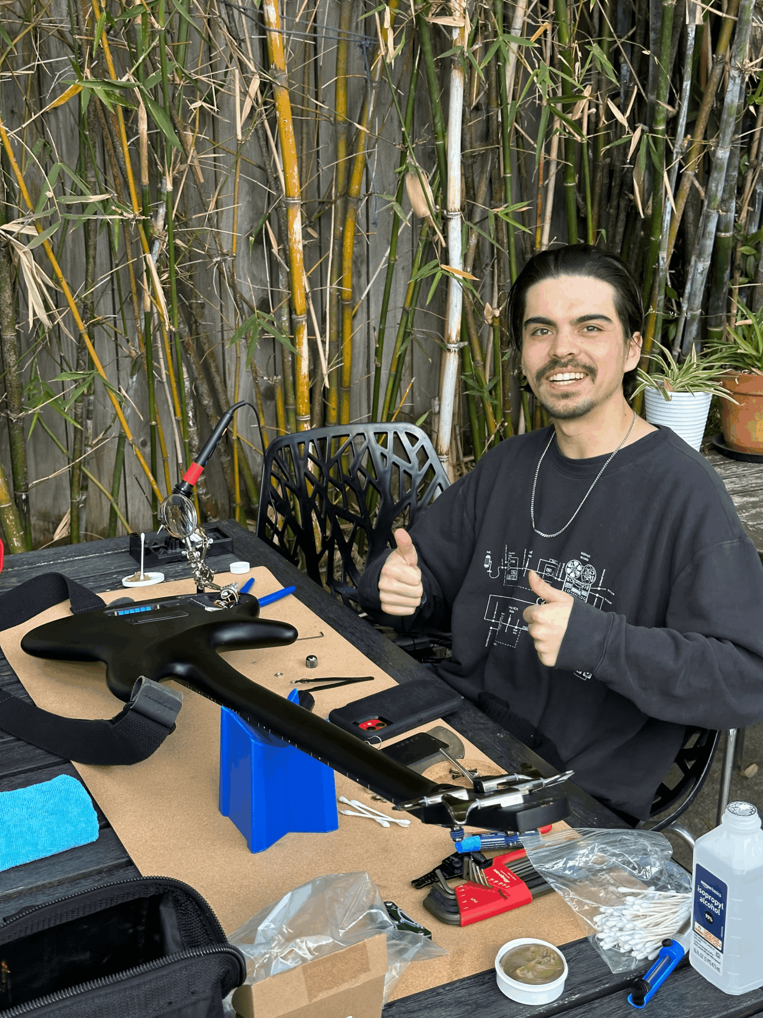 In my free time, I have been mixing Student Films/Documentaries for friends I have met in LA since I’ve moved into the city (I am from San Diego). Additionally I have turned my room into a recording space for tracking vocals, I have been working with vocalists I know to cut their demos. I am aware of how frustrating it can be for some artists to record and mix their own art. I also realized when starting out, that I would be unable to compete with larger studios and even the bedroom studios in terms of quality. Currently, it is financially not possible. So I try to focus on outdoing my competition with the vibe of my bedroom studio. My goal is to create a risk-free environment for artists to lay down their idea with someone who is technically competent in recording and mixing. If I can provide a way for the artist to put down an idea without having to put on the “Engineer” hat, I have succeeded. I want the artist to have a space where they can be in a purely creative headspace. I also provide guitar setup/repair/diagnostic services for the exchange of beer (the friends fee of course). I have been building and repairing guitars on my own for almost 10 years. Additionally I have been working with friends that need a guitarist for their projects.