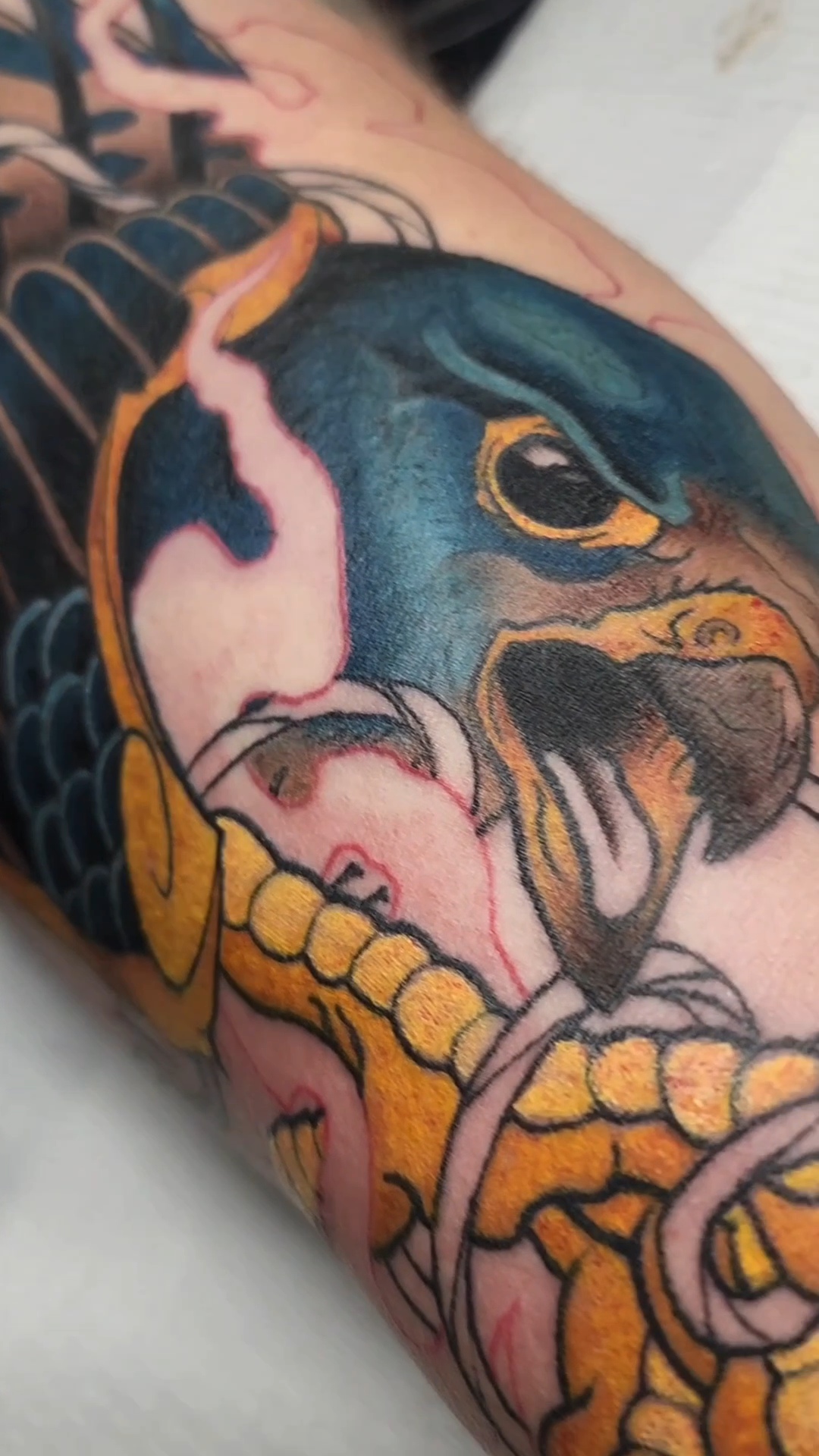 I feel like it’s been fairly difficult for myself to really stand out but I think that one thing would be that because of my mentors knowledge I have gained the ability to tattoo a wide range of styles instead of forcing myself into a box. With this I have been able to help clients merge together diffent styles that they may have previously gotten into cohesive pieces. Although I would absolutely love to primarily focus and tattoo neotraditional pieces I truly want my clients to be happy and in love with the artwork on their bodies. I pride myself in being able to sit down with my clients to truly bring to life what they have envisioned for themselves. This also means that if the idea or design is something I feel one of our other artists or an artist I know can bring to life better, that I happily send them their way, as tattoos are a lifetime commitment and it’s what my clients deserve!