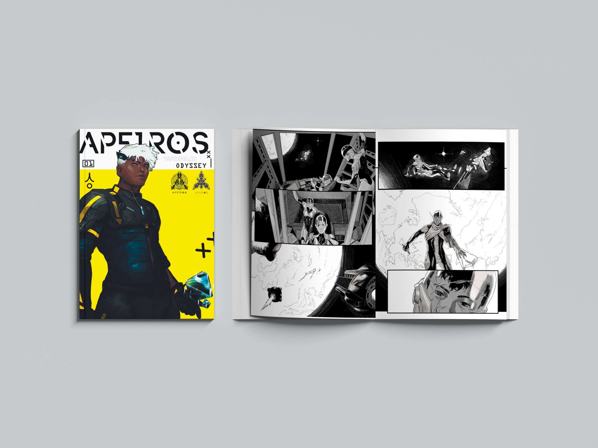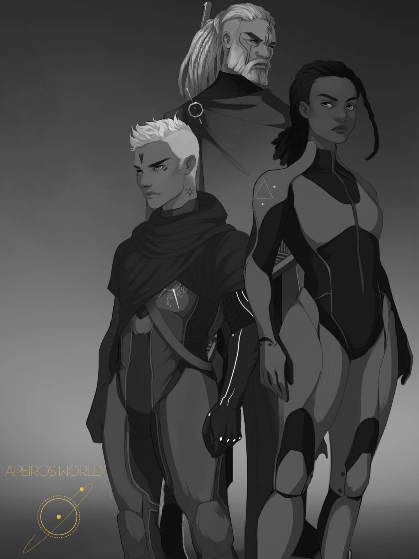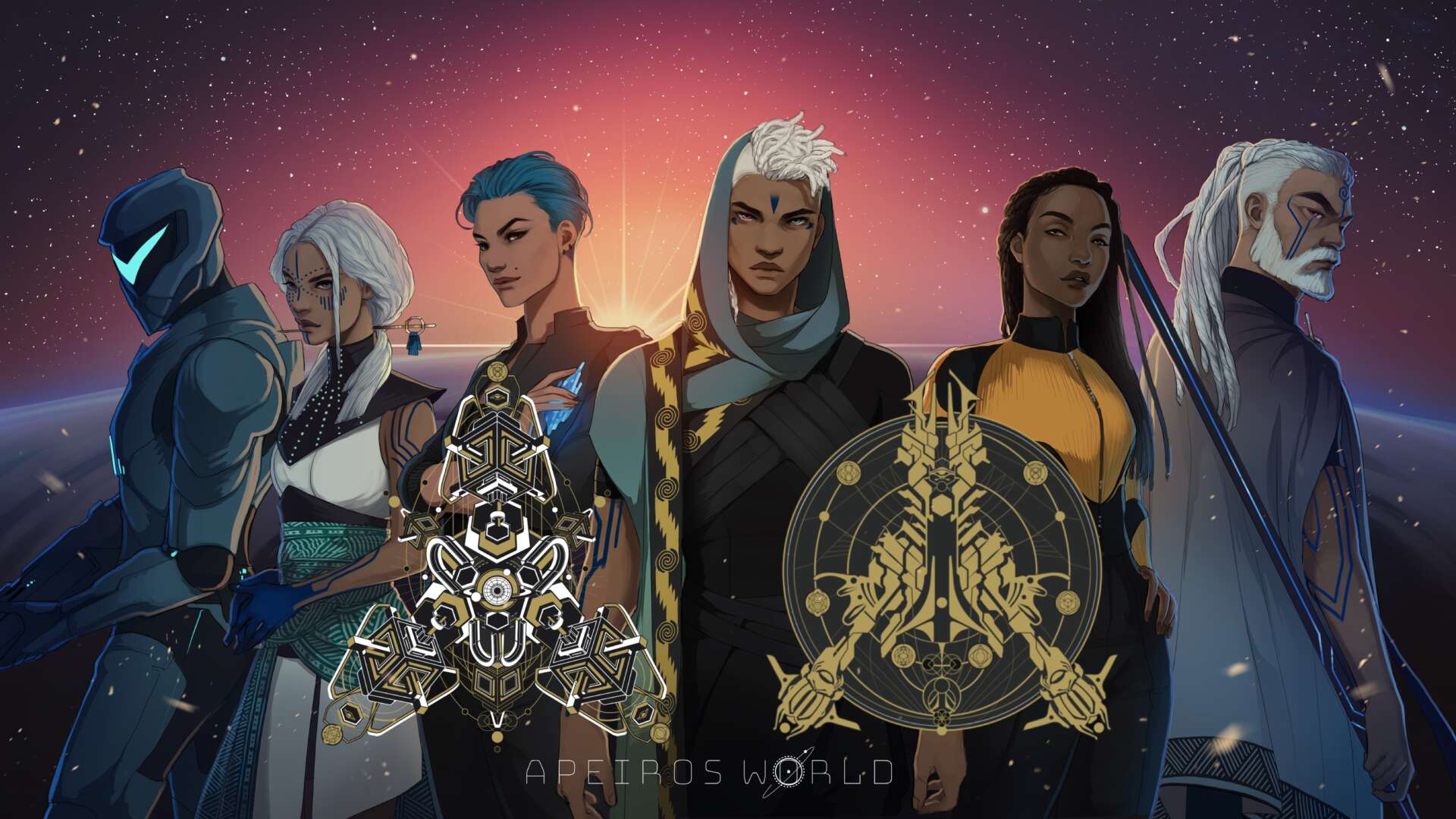 Artwork & designs created for The Apeiros World Project by: Mona Finden, Shaun Beyond, Fraxi, Yussuf Adeleye, Shephard Norman, Andrew M Creative, Liz K. Creative, & Boigil
