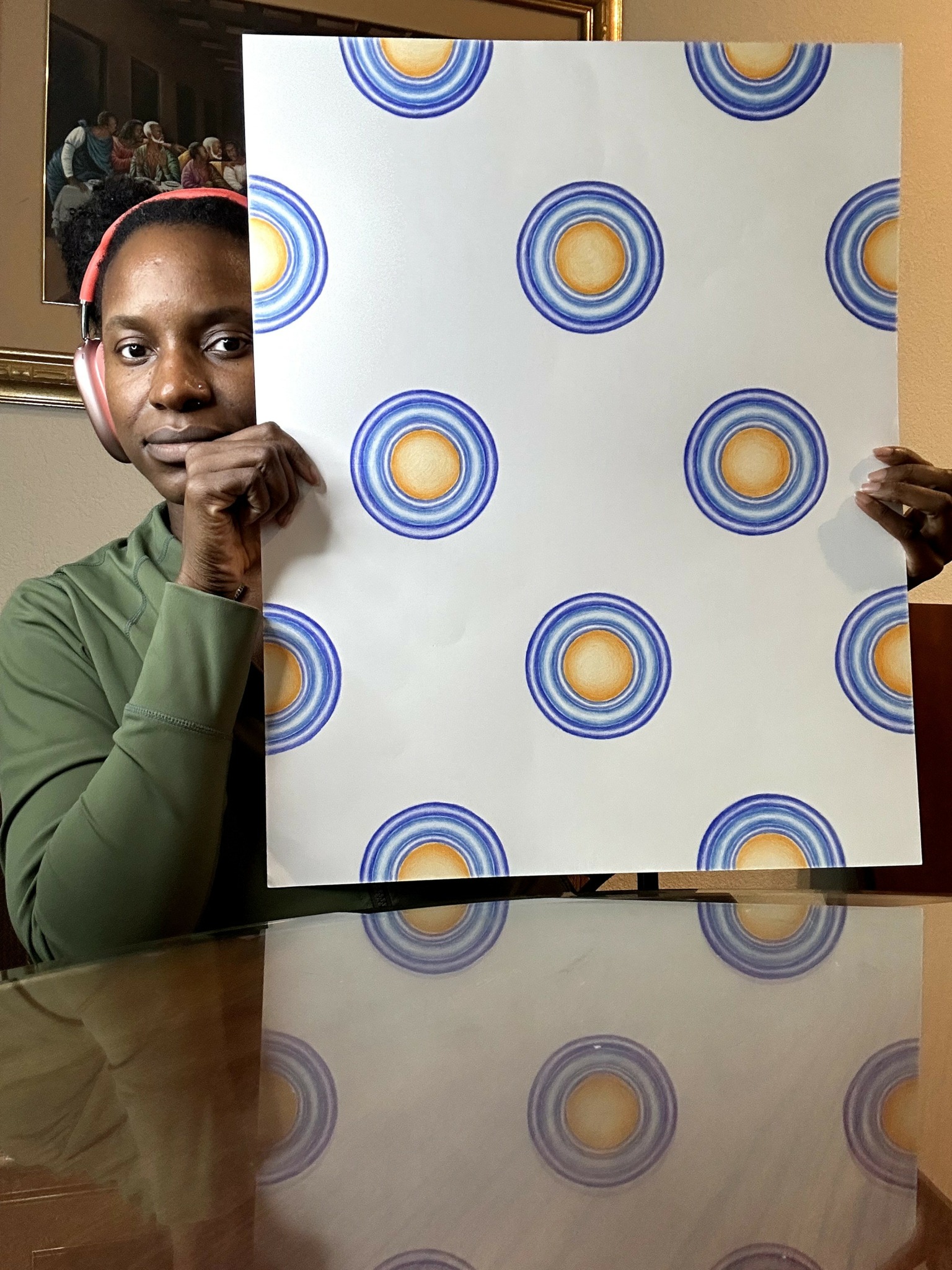 What sets my work apart is the fusion of ancestral influence, spiritual depth, and contemporary expression. My pieces aren’t just “pretty” they carry meaning, memory, and movement. They celebrate identity, culture, and the resilience that comes with starting over. You’ll see hand-drawn gradients and geometrical patterns, and intentional repetition throughout my work.