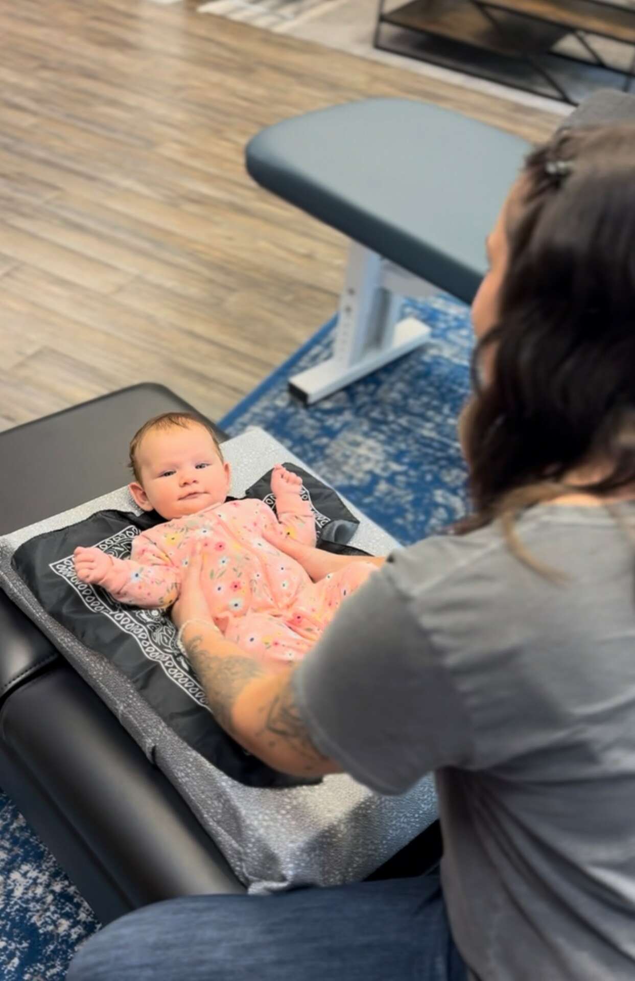 I’m often asked if an adjustment on a baby looks the same as the ones you see on TikTok and Instagram. They are not even close to the same. Babies require much less pressure and force to achieve the same result as an adjustment on an adult. Most of the time, all it takes to adjust a baby is a sustained contact hold on the area where I have found a subluxation. The best part of my job, aside from helping babies and moms feel better, is that I get to hold cute babies all day long.