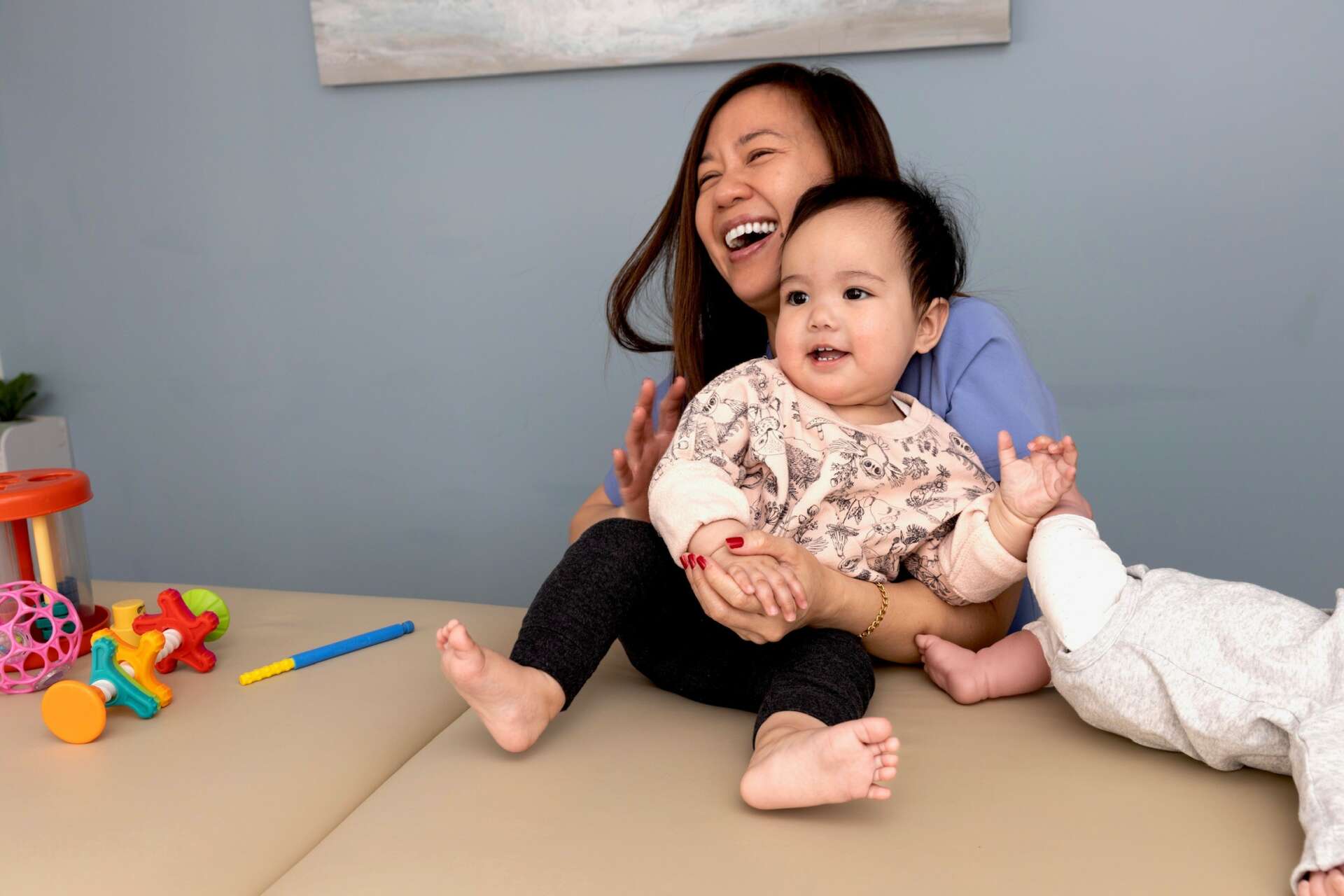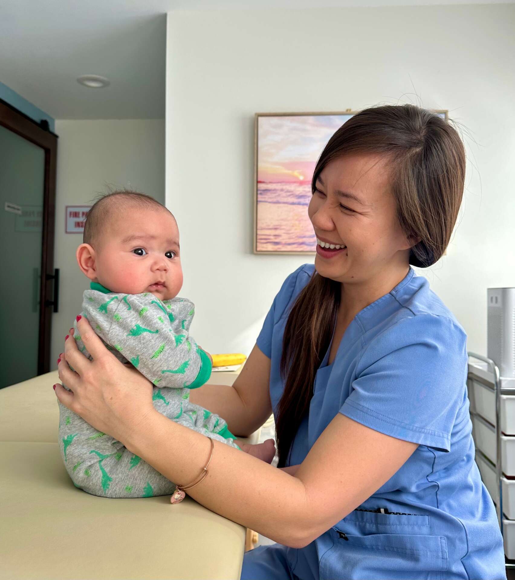 What sets me apart from others and what I’m most proud of is that I utilize a trans-disciplinary approach. I never try to solve a baby’s issues alone. I love working with a team. Babies are complex human beings and they need a team to support them. I always stay within my scope of practice and I refer babies out to the proper experts, as needed. I have encountered many cases where providers try to do everything on their own and weeks or even months pass before a baby is referred out. Usually by that time the dysfunction is so significant that habits have ingrained, parents are beyond exhausted, and babies are so dysregulated that the treatment becomes even more strenuous on the baby and family. If a family is diligently doing what I recommend for two solid weeks and they are still struggling, I refer them out and I expand their team. Babies are changing and developing daily. There is no wait and see period. My approach is effective, efficient, and collaborative.