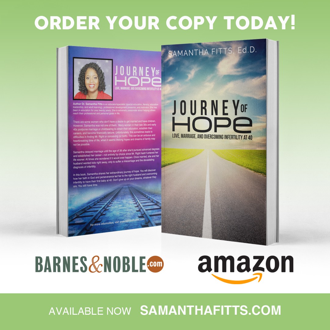 Over the past few years, I have been motivating others through the messages my book: :”Journey of Hope: Love, Marriage, and Overcoming Infertility at 40″. I am extremely passionate about helping others reach their professional and personal goals in life.