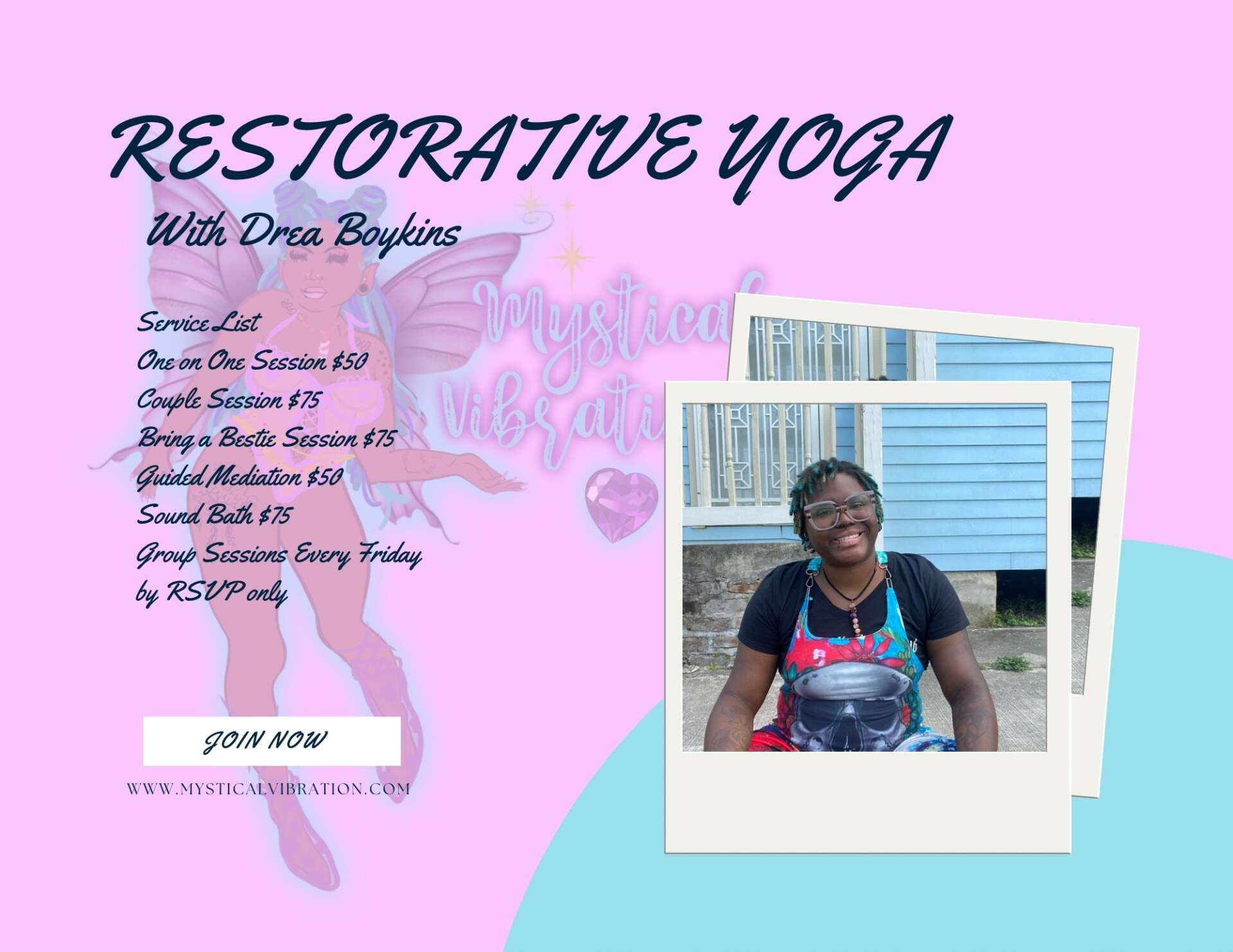 Hello I’m Drea Boykins The Crystal Fairy, owner of Mystical Vibrations, Healing Talk the Podcast Locs by Dre & Restorative yoga teacher. At Mystical Vibrations we specialize in copper wrapped crystal jewelry, healing crystals, & healing tools. Each of our products and services are created to assist in our clients journey of healing mind body and spirit. To further aid in this process I teacher weekly restorative yoga classes on Tuesday & Thursdays for the mommy community and Wednesdays at various parks around the city to encourage our community to tap into the healing resources available. On our Healing Talk the podcast we share stories from around our city and those who I’ve met on my spiritual journey to shed light that healing isn’t a one size fits all journey. No matter what path you choose whether it be through religion or spirituality the most important thing is when you find yourself in your own dark place you find the strength to pull yourself out. I share my guests stories in the hope that they can serve as motivation & inspiration to our listeners.
