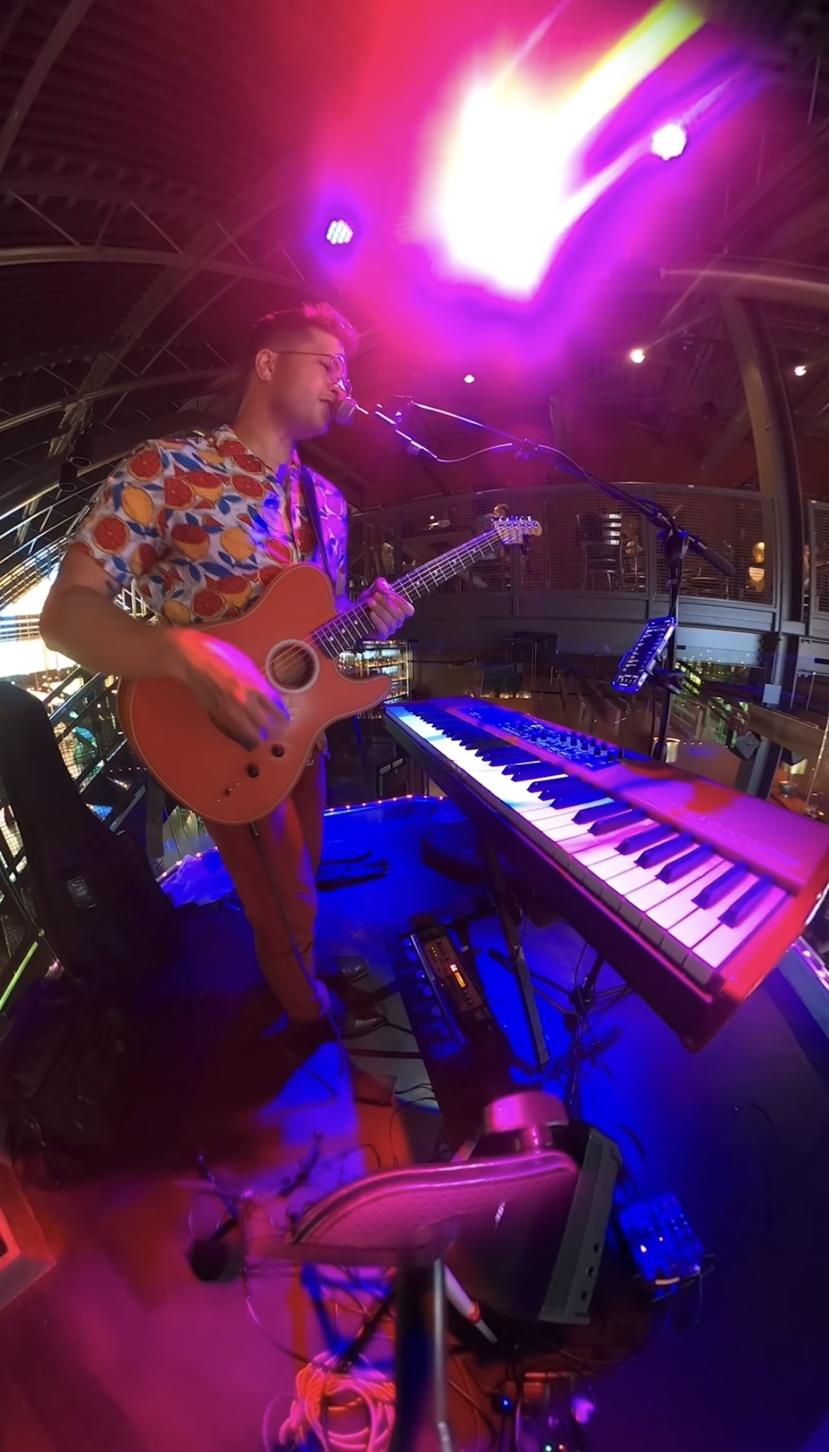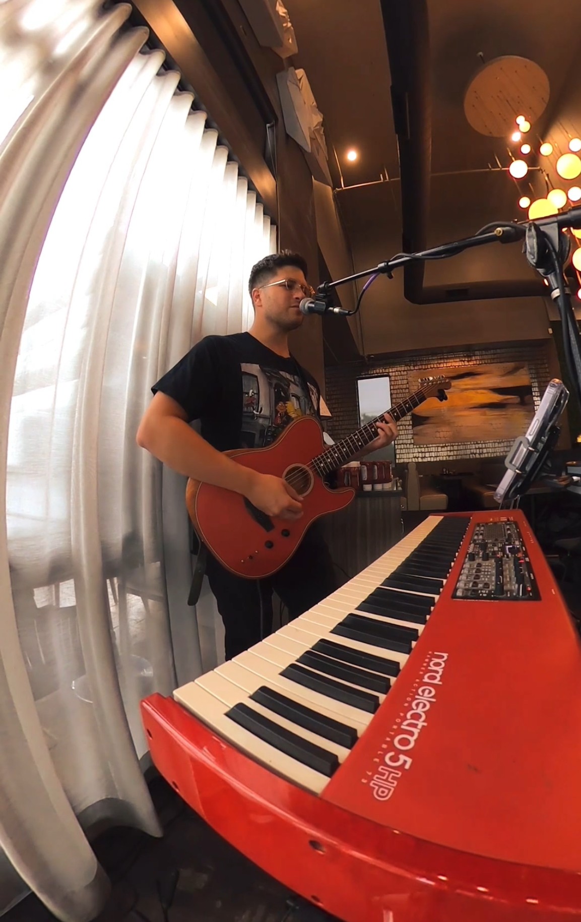 I feel very grateful to be making a full-time living that supports my little family of three! In retrospect it feels like it came easy but I went through half a decade of having no savings and barely getting by. It took 6 years for me to find my niche, and then one day I figured out how to live loop like Ed Sheeran and BOOM I was booking 300+ solo gigs a year my first year doing it. From there I upgraded my guitar, sound system, and electric keyboard and started building my reputation. Things would have progressed way faster for me if I had gone solo out of high school I suppose – I was singing in a band formed with high school friends those first 5 years. But I wouldn’t trade my time with them for a billion dollars and they’re some of my closest buddies to this day. Oh, I should’ve been doing YouTube videos though from day one haha. That would’ve been very smart. Whoops! Never too late though!