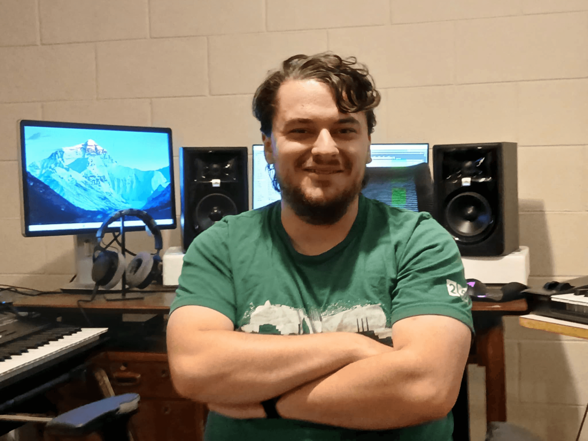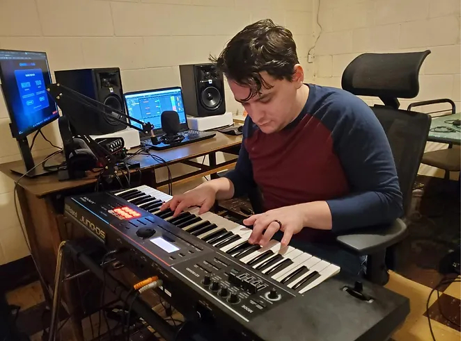 I’m Drew Nyquist, I’m a Christian, husband, cat dad, composer, and music producer from Michigan. I was inspired to get into music at a young age when I started playing Guitar Hero and Rock Band, as well as going to jam sessions with my relatives. I was also heavily involved in choir from 5th grade all the way up until I graduated from college, which was profoundly influential on my musical journey. I started playing drums when I was 8 or 9 years old, and though my career goals have shifted since then, I’ve knew from a young age that I would love to work as a musician of some sort when I grew up. I played drums in a death metal band called Recorruptor in my early teens, and more recently in the grunge-rock band Gray Rapidian until about a year ago. Though live music is fun, I found it far more exhausting and considerably less fulfilling than composing and producing my own music. I have also since picked up other instruments and can now sing and play any instrument in a typical rock ensemble (drums, bass, guitar, and keys) to varying degrees of skill. I had been dabbling with music production since my teenage years, but never seriously pursued it until just a few years ago. I chose music as one of my two majors in college, and as part of that, I did an independent study on music composition, where my instructor showed me how to use Ableton Live, which is still my main workstation when creating music.