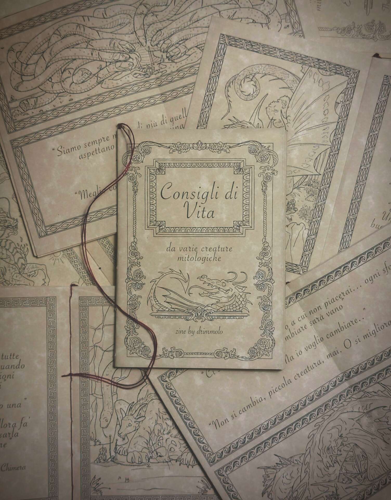 Currently, I am especially proud of the mini-book I mentioned earlier. It is a small A7 booklet, where I interview 7 mythological creatures from different cultures, and “ask them to offer one life advice to humans”. The Hydra, the Simurgh, the Qilin, the Leviathan and others give small but impactful lessons based on their experiences and myths. I am proud to say many people buy them as gifts for others, but often keep one also for themselves. Soon, volume 2 and 3 will also come out, and later, even a collection of all 3 of them in a bigger, colored version.