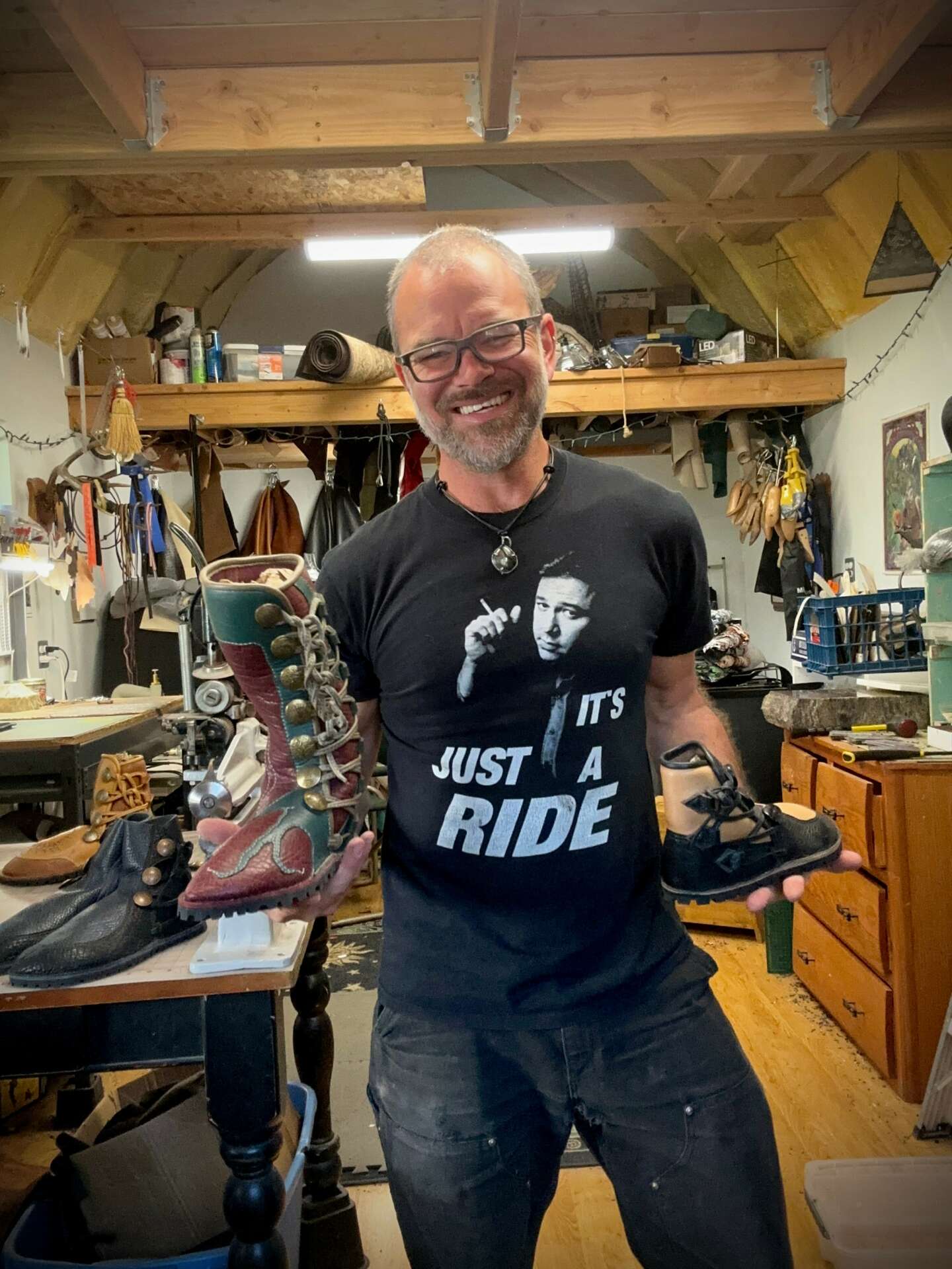 There’s tedium in anything you do long enough. This is all the more obvious and likely to become soul-crushing when you’re alienated from the product of your labors, when the interaction with customers is impersonal, and when the work itself requires little to no imagination. I am incredibly thankful that I stumbled upon shoemaking/leatherworking, that I found it inspiring, and that I took the somewhat whimsical and off-beat leap into turning it into a viable livelihood. I think it has been central to my making this thing work that it jibes well with my seat-of-the-pants lifestyle and with my principles and values. There’s a very satisfying, community-rooted intimacy in the process of placing a shoe order with me. I handle each pair of feet during the tape-casting process, further acquainting myself with the customer in conversation about the various options they get to choose from. Because my waitlist is typically 4 to 10 months out I don’t always get the opportunity to see the shoes on the feet they were made for, but I often do, and I can’t overstate how rewarding that experience is.