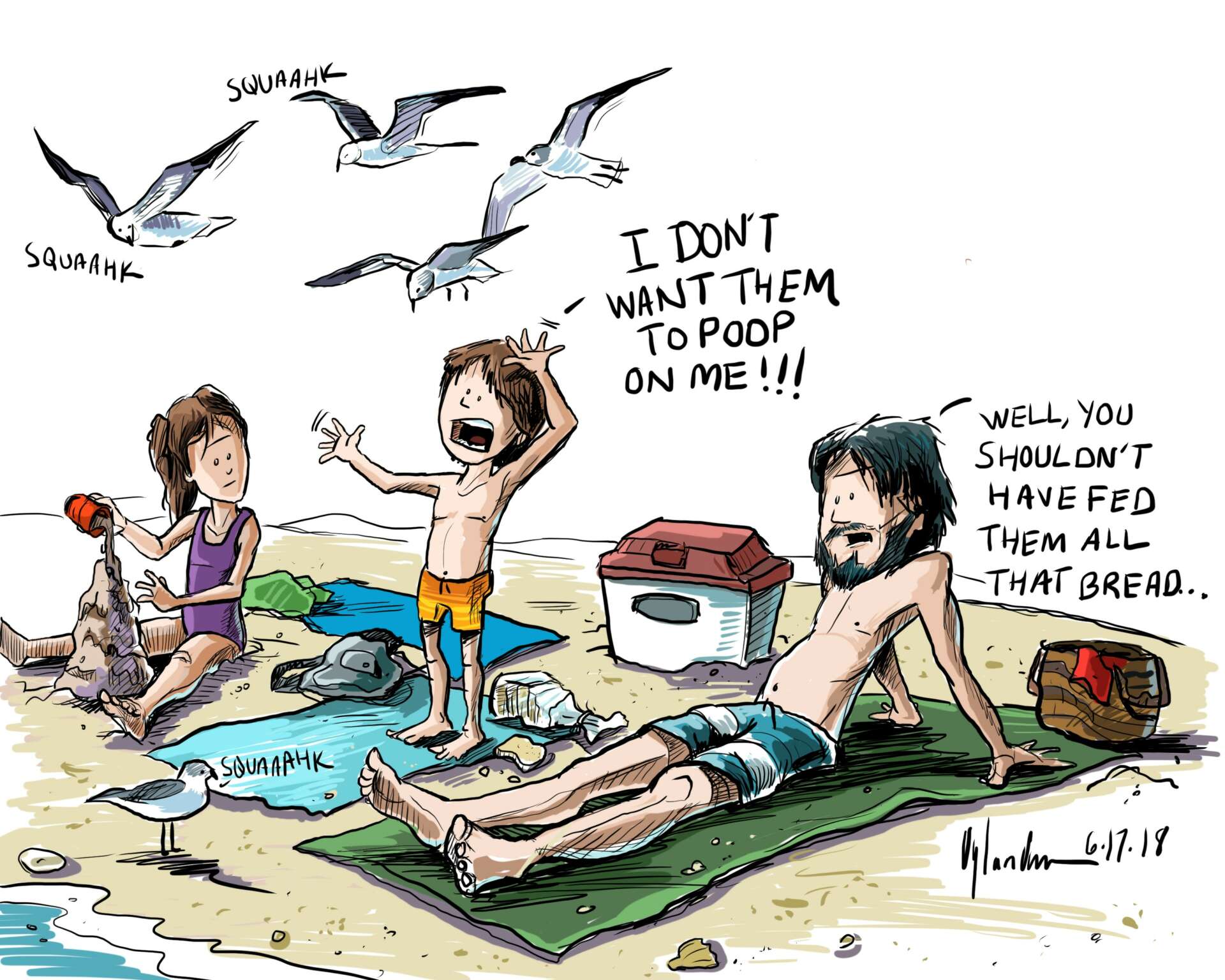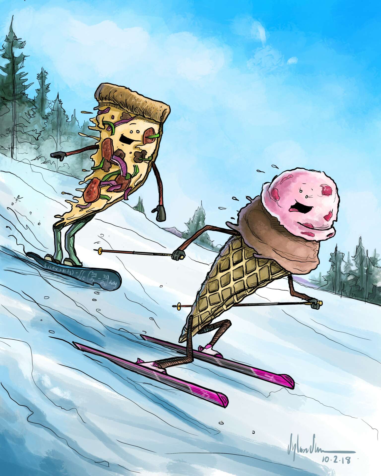 I used to draw as a kid all the time. In fact, when there were drawing contests in school all my peers would say “well, Dylan is going to win anyways…”. Flattering, but I remained humble. I practiced every day in my oversized pad of paper, listening to movie soundtracks and coming up with ridiculous scenarios ranging from dogs hypnotizing cats to standing bears plugging a hunter’s gun barrel with his finger. (We’ve seen that bit before, right?). I was heavily influenced by Garfield and Calvin and Hobbes comics as well as most anything Disney…specifically Darkwing Duck characters. A lot of my earlier work resembles these styles. I knew very early on that I wanted to do this with my life and becoming an animator became my dream and goal. And to do that, I needed to go to art school and learn to draw from life, master the human figure, and explore many different types of artistic mediums. So that’s what I did. However, I did not go into animation. Life took a different turn and I unexpectedly ended up in signage design and technical drawing…very far from where I pictured. However, I keep up with my more creative side by maintaining a comic on Instagram, fulfilling freelance art and design requests, and writing and recording music.