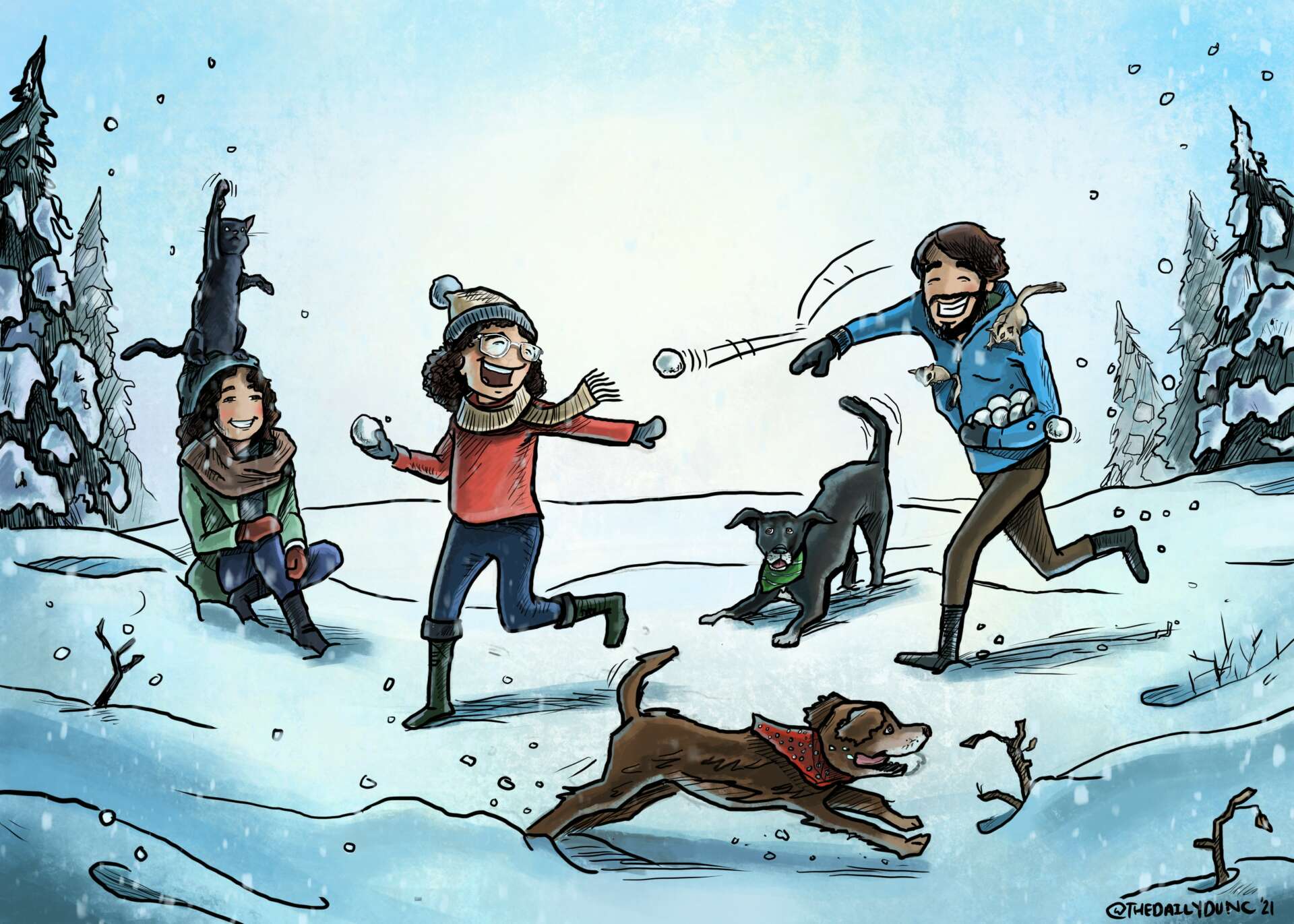 I’ve also been very fortunate to have had my followers be interested in my work to the point of supporting bonus content through a Patreon account I had active for a couple years as well as purchasing signed prints and T-shirts from my online store. I have been commissioned by some of my followers to create custom comics and art for them for use as gifts and holiday cards, most if not all in the style of The Daily Dunc. I also have made many personal and professional connections through my page which has been a very rewarding side effect of posting content. It’s been great ride and I plan on developing it further with plans to create a Daily Dunc collections book, more products in my store, a searchable website, and maybe even a podcast to feature other artists. I also have a few side comic ideas in the works including wrapping up a “Davey in Space” (@daveyinspace) story I started a couple years ago as well as a new comic about me as a kid growing up in a small Vermont town. I want to bring my mom back to life this way, featuring her as a prominent character in an on-going family narrative. So be on the look out for that!