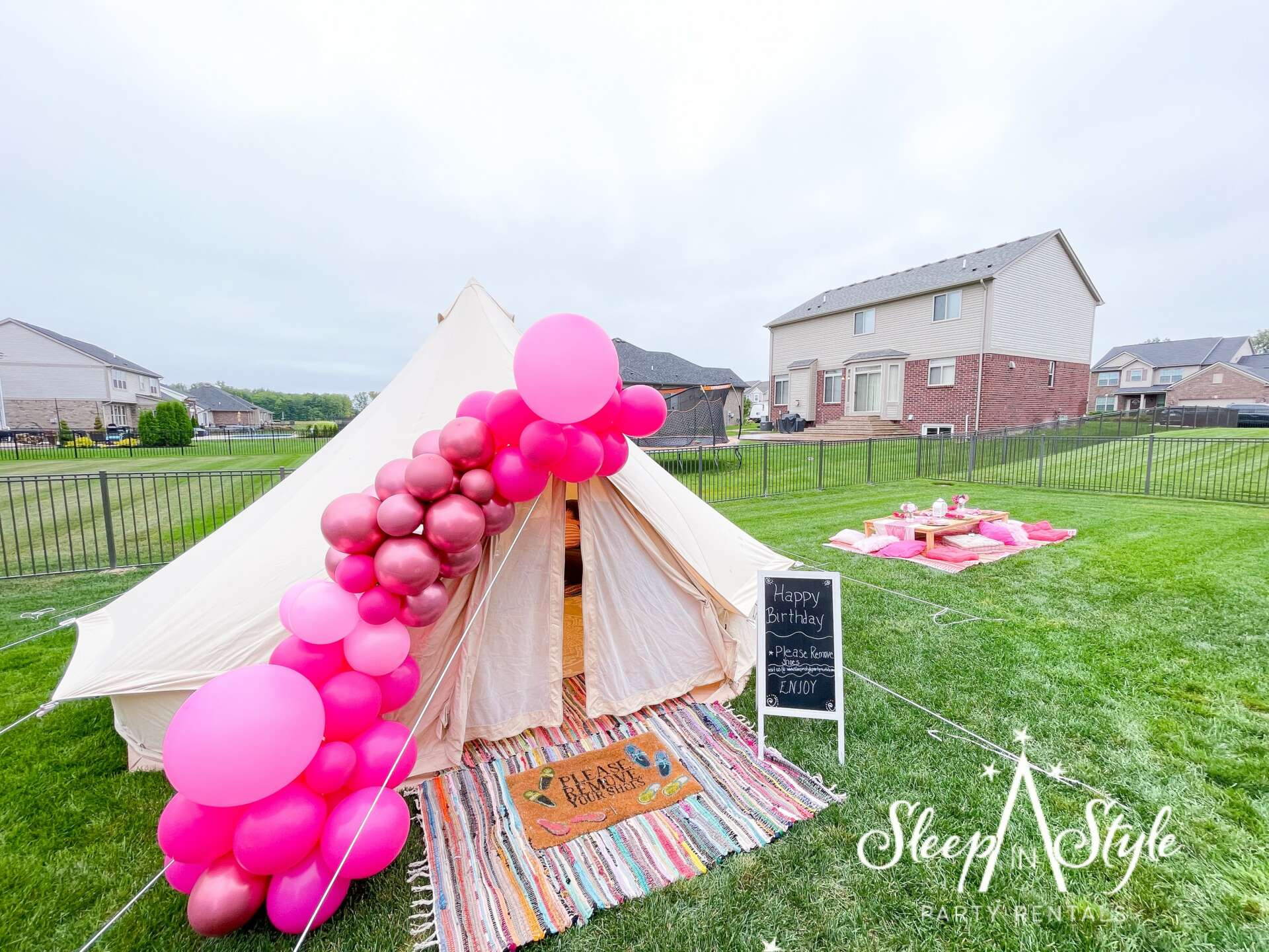 I am a mom of four daughters and I love doing parties. Since my daughters first birthday my kids parties have always been major events in our family. Due to covid my idea of a birthday party for my nine year old looked different but because I saw the effects of covid on my children I knew I had to make this birthday party special. Even if that meant she would only be able to celebrate with her three other siblings. So I searched my area for something to do with her and nothing was available. I had seen those wooden A frame tents before but I had no idea where to get those in Michigan. No one that I knew of at the time was offering this service and I couldn’t buy them anywhere. So I asked my husband, Pastor Steven Bennett, to build these tents for her party, and he did. I had no knowledge and no desire of starting this business my only goal was to make my daughter smile during her birthday because this was a tough season for us all. But after he built the A-frame tents I added balloons, I created personalized pillows for her sisters and cousin, we added lights and it was the best sleepover ever. I posted her party on Facebook and Instagram and my inbox lite up. The following week was my other daughters birthday and she wanted the exact same thing. My husband perfected the built of these tents and I changed the theme of her party and then I posted her party and again my inbox blew up. This is when Sleep in Style Party Rentals was birth in the middle of a pandemic just because I wanted to give my daughter a great birthday party.