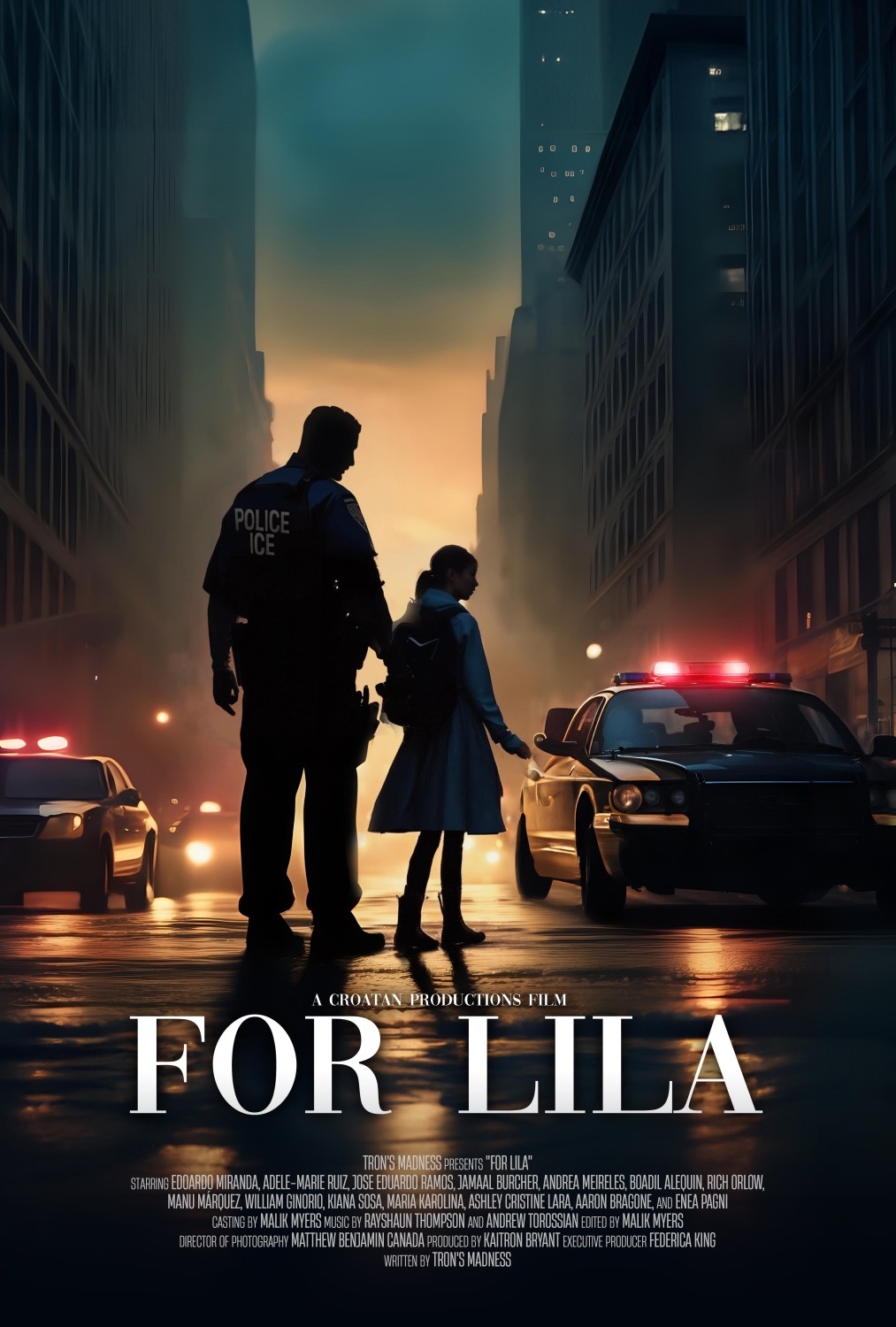 In “For: Lila” by Croatan Productions, I played the lead-Sal De Leon, a Mexican American ICE officer suffering from a severe cardiac disease who, relieved of duty, goes on a vigilante mission to rescue a young immigrant girl from her captors. The role was physically, emotionally, and politically demanding. I trained with a dialect coach (a large portion of the film is in Mexican Spanish), went through tactical firearms training, and researched the character’s cardiac condition, cardiomyopathy, its symptoms and implications.