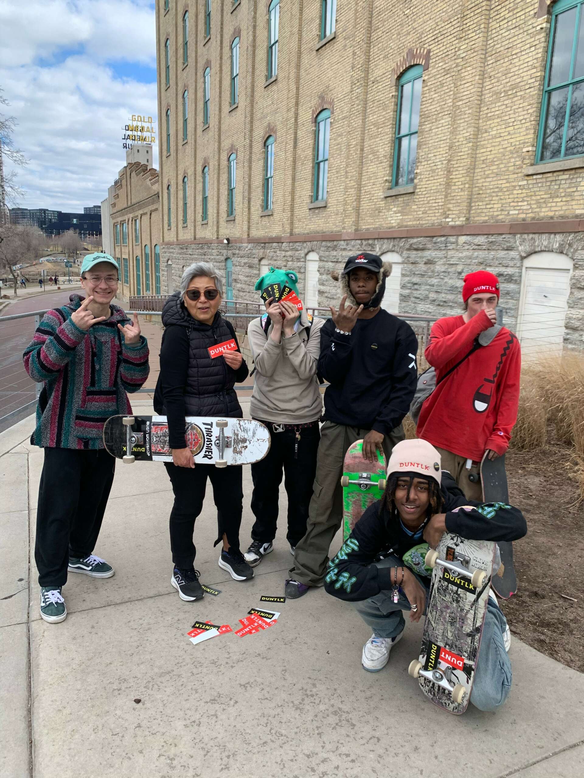 In addition to Red Pepper Prints, the DUNTLK clothing brand we’re managing is taking off around the city. The goals for the brand are to be the number one skate brand in the Midwest, strengthen the skate community in Minnesota by hosting monthly events such as barbecues and giveaways, and encourage Saint Paul skaters to visit skateparks in Minneapolis and vice versa. During the summer of 2023 the DUNTLK team went to Thailand and Japan to give away clothes we printed and designed and to find artists who might be interested in partnering with YKD.
