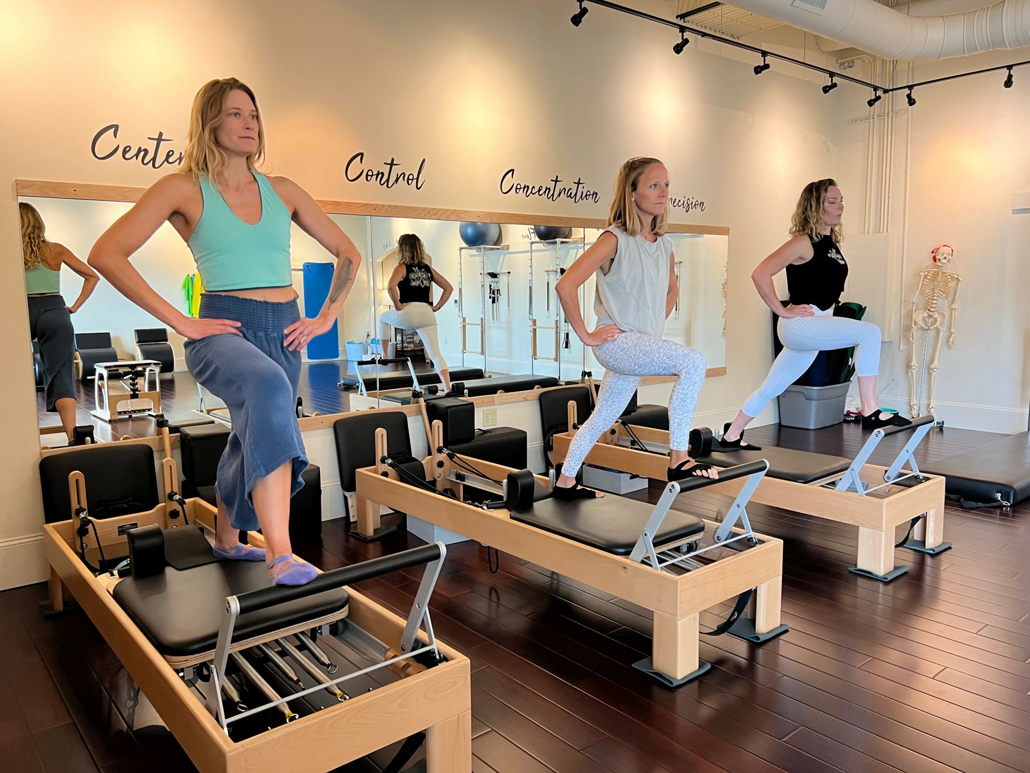Pilates is corrective exercise, but it is different from modalities like physical therapy, because it is centered-based and corrective via active, flowing movement vs. single prescriptive exercises. And to get the most bang for your buck from the Pilates Method, you have to stay centered and focused while doing the work! So our entire team is focused on: how is the spine, where is the spine, and is it long and stable, and is the core engaged, for every student, in EVERY. SINGLE. EXERCISE, to keep the quality high and the results consistent. This in and of itself is no small feat, and I think it is why we stand out amongst other studios; we put in the work to teach our students to focus on the details and move with integrity, vs. succumbing to the whim of our culture to move fast to feel the burn, and further perpetuate mindless movement. When teachers help students orient their movement practice around the center (core) with awareness, the benefits are tenfold. And not only are we getting people to strengthen their physical bodies, this centered, awareness building approach also influences their mental and emotional planes. We might be working on centering the core before we do leg circles for instance, but this practice can indirectly help a student stabilize amidst chaotic times in their every day life. And who doesn’t need to be stable during times like this?