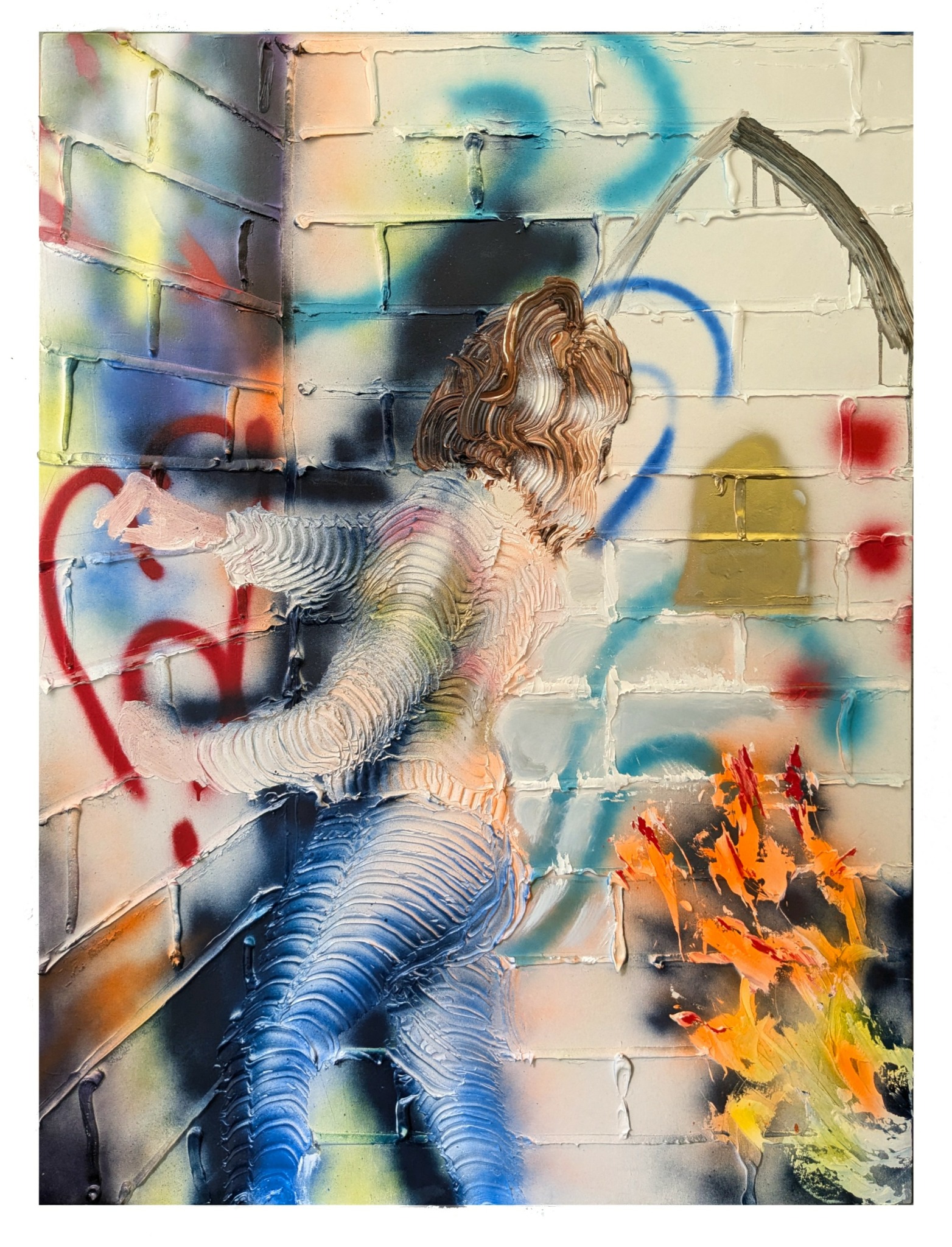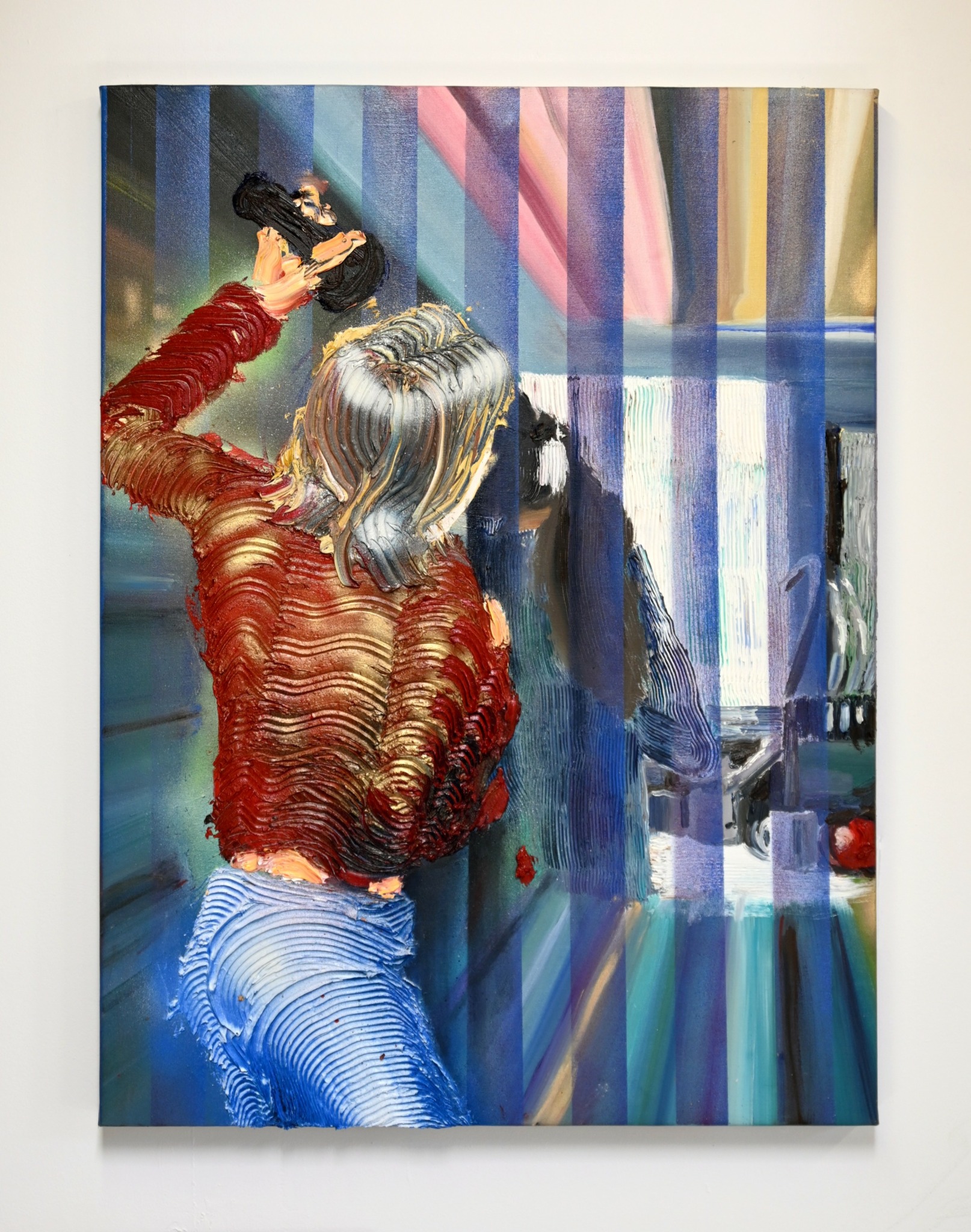 Though the subject matter of my paintings carries meaning (like how the Nancy Drew paintings are about mystery, the female body as object/subject, and female agency) I feel that the deeper subject in all my work is illusion versus reality. I explore this in my painting by having sculptural paint that has an undeniable physical reality to it in conjunction with flatter, illustrational, or more abstract elements. The question of what is real and what is an image is woven into the history of painting as well as our everyday experiences.