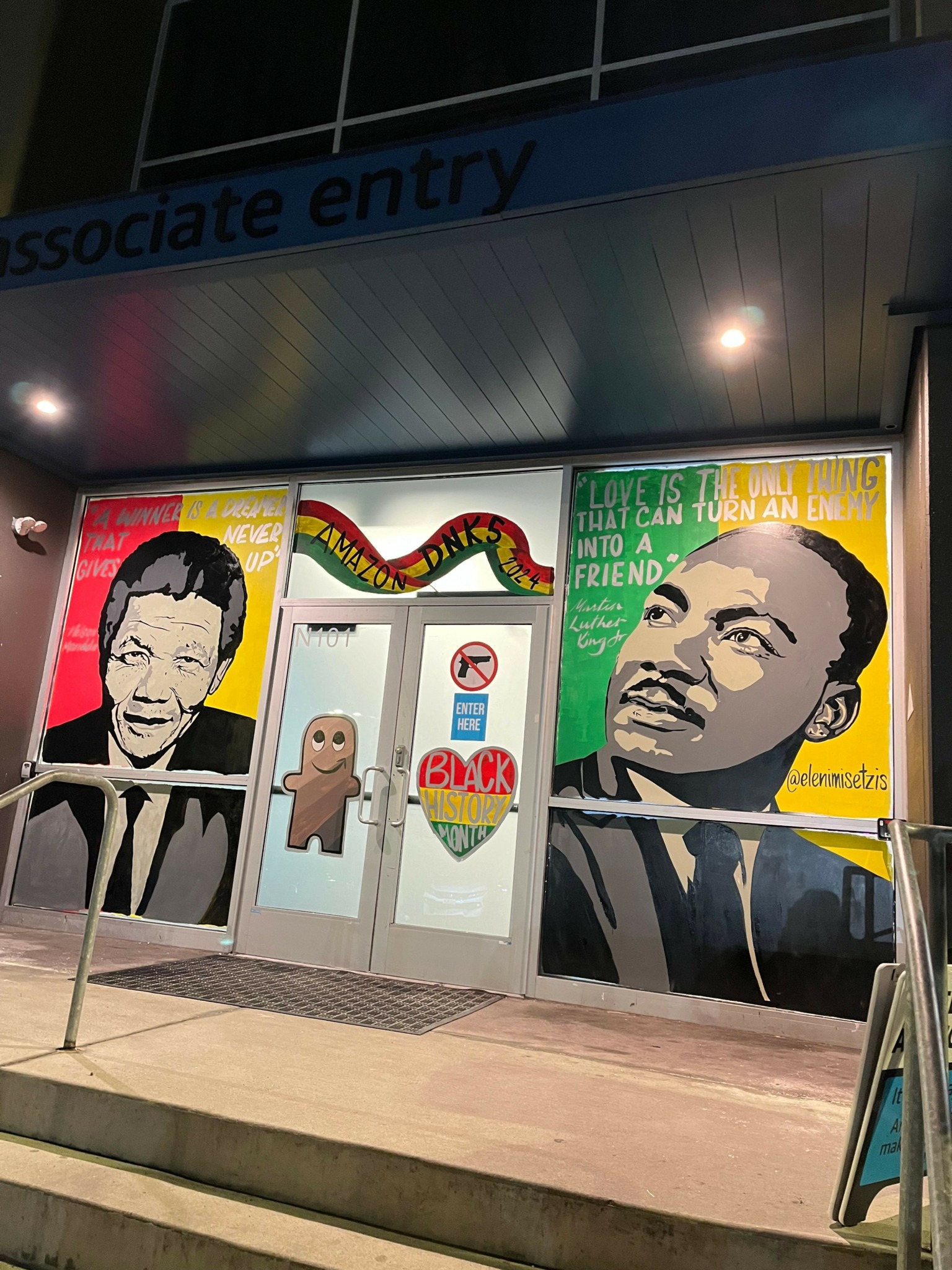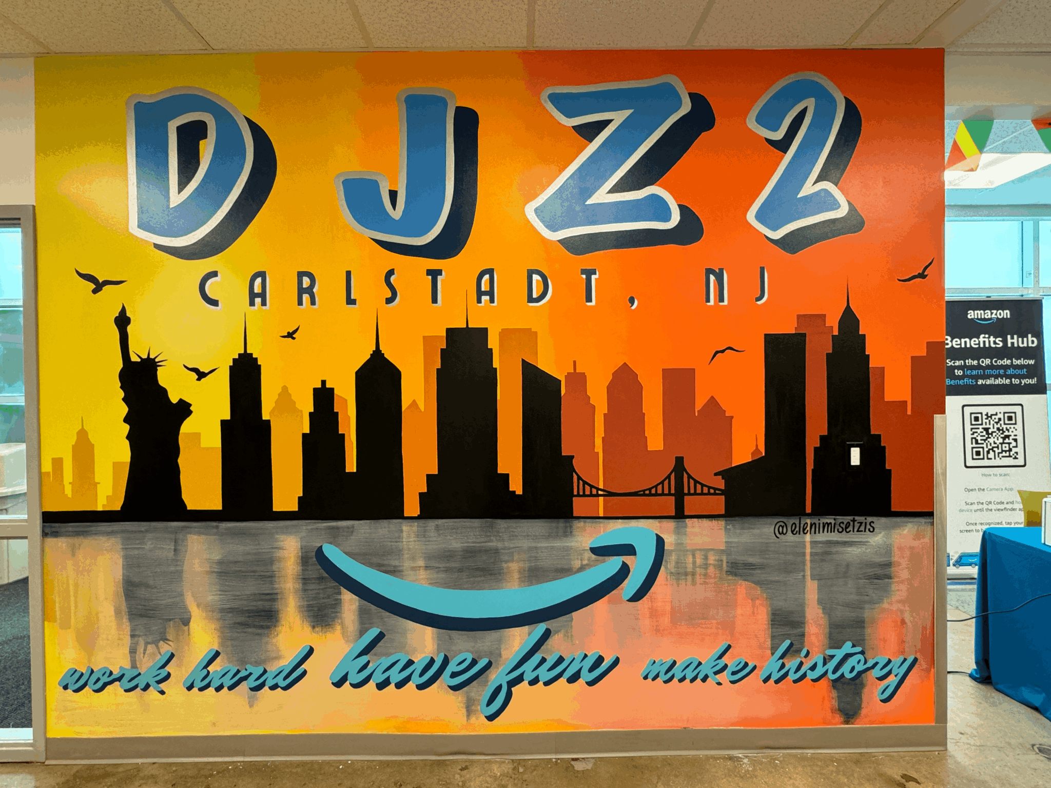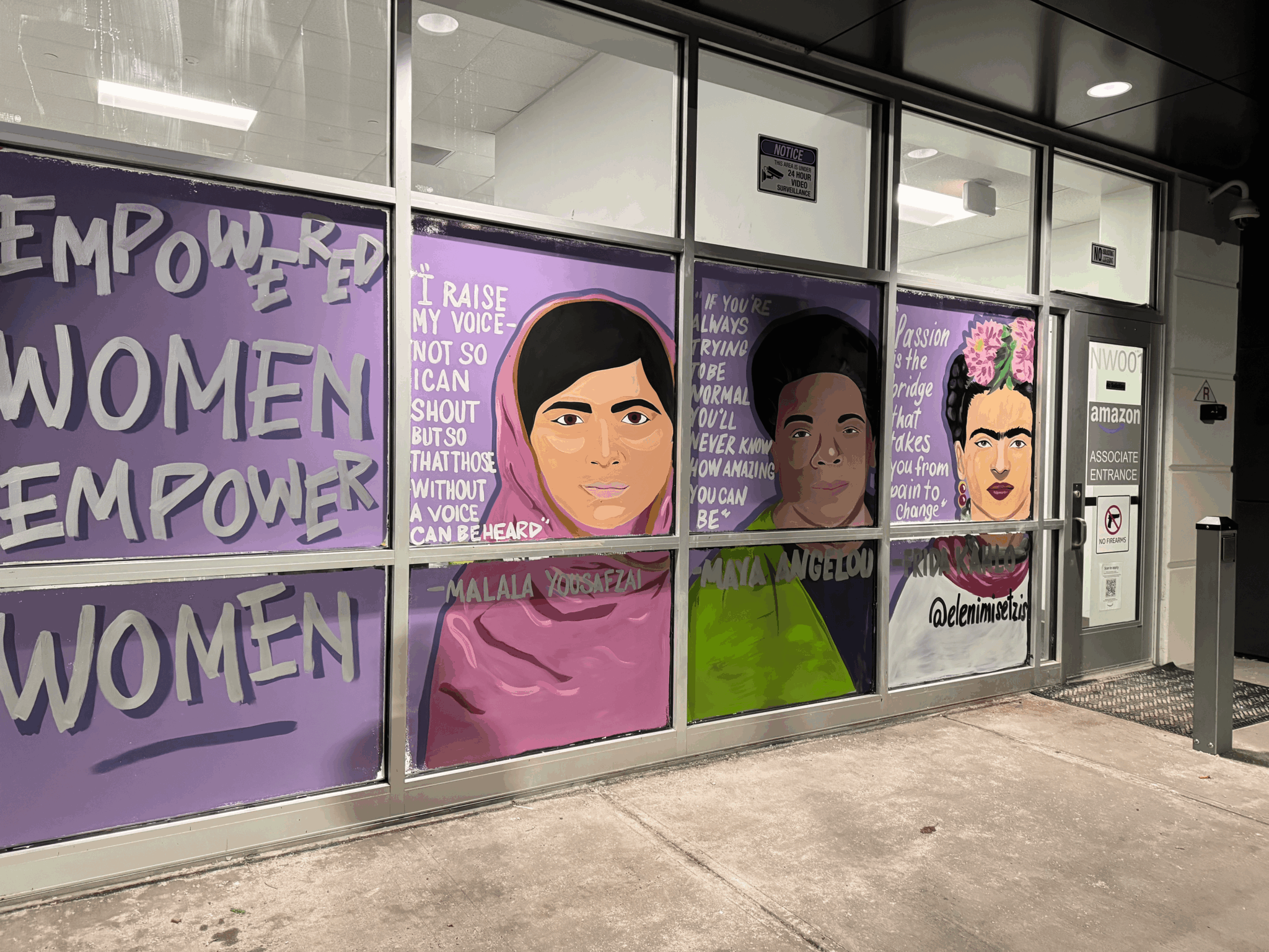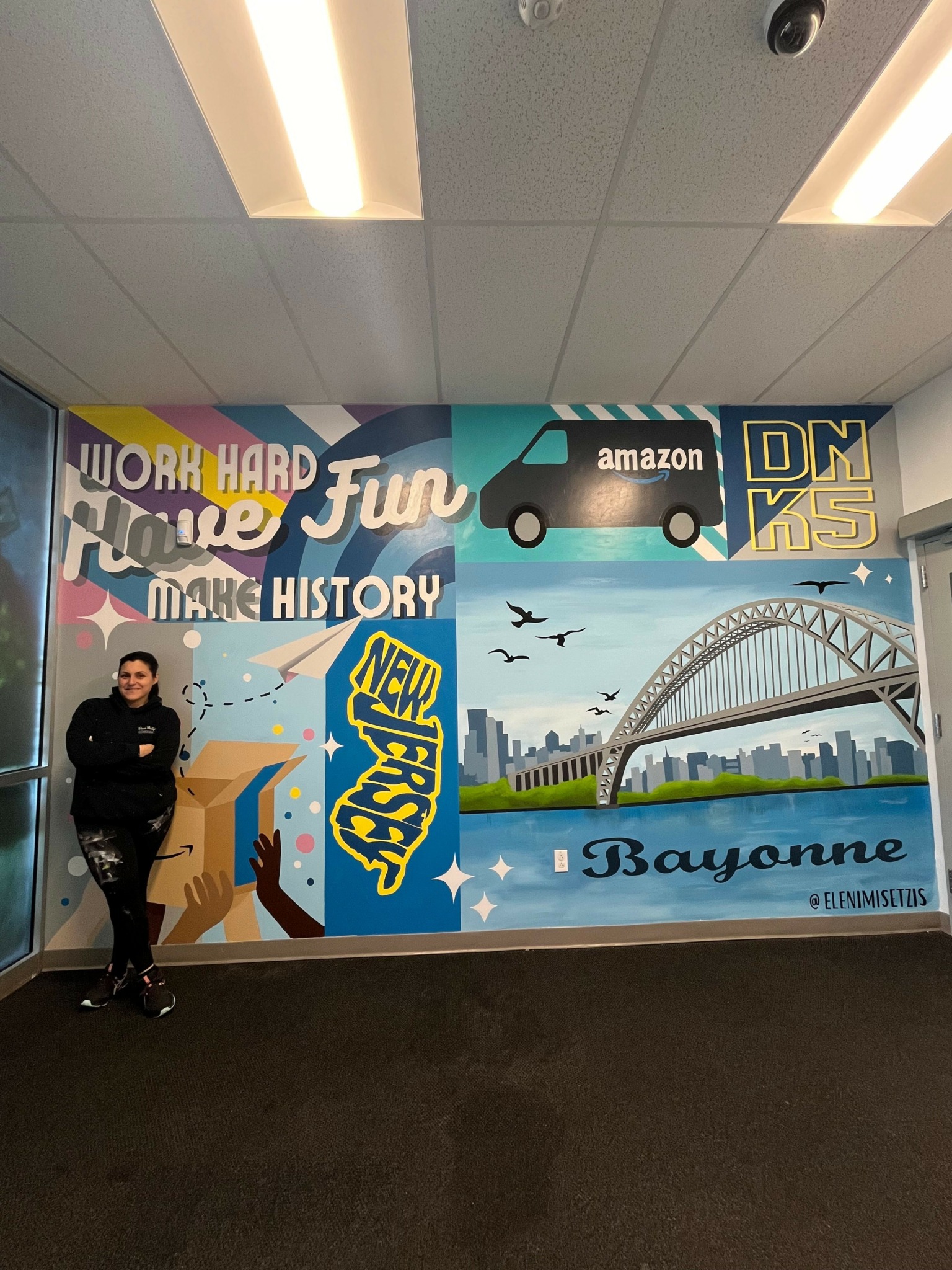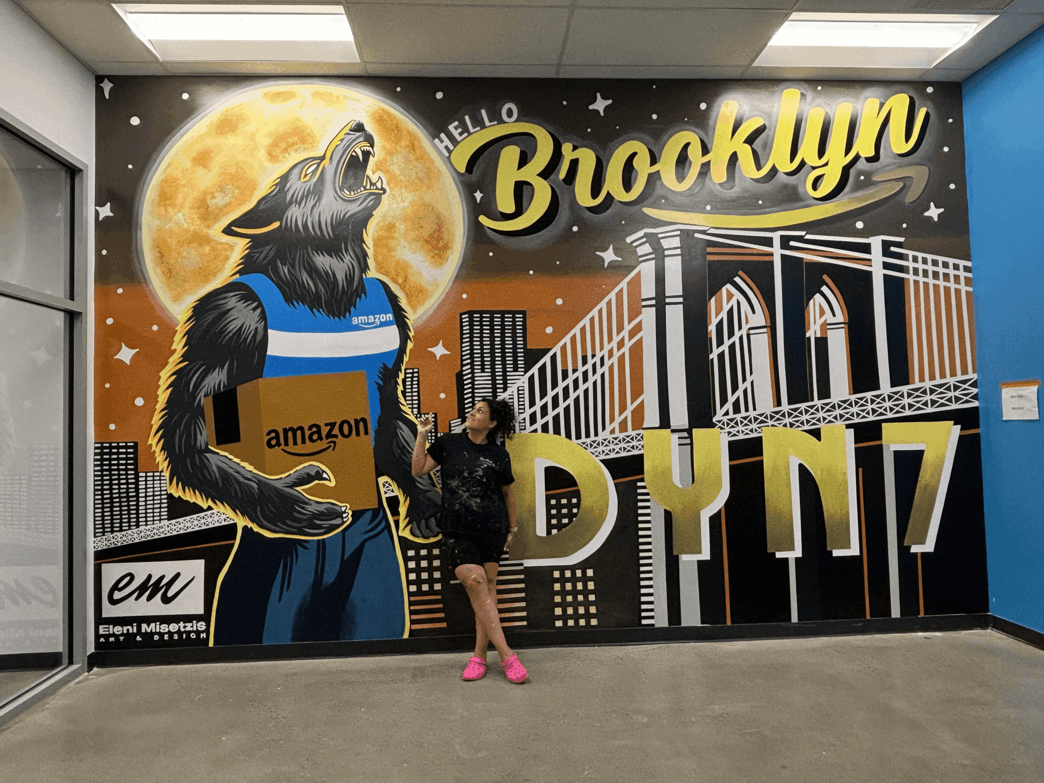 I always was artistic from a young age. I went to the School of Visual Arts for Interior Design. Unfortunately I didn’t find work in my industry when I graduated but I always stayed artistic. I started painting windows in my neighborhood for some extra cash for the holidays. That is what started the fire. One business brought on the other. I was laid off during Covid and made the decision to pursue this full time. I now paint for franchises, new businesses, and big companies like Amazon as a full time muralist