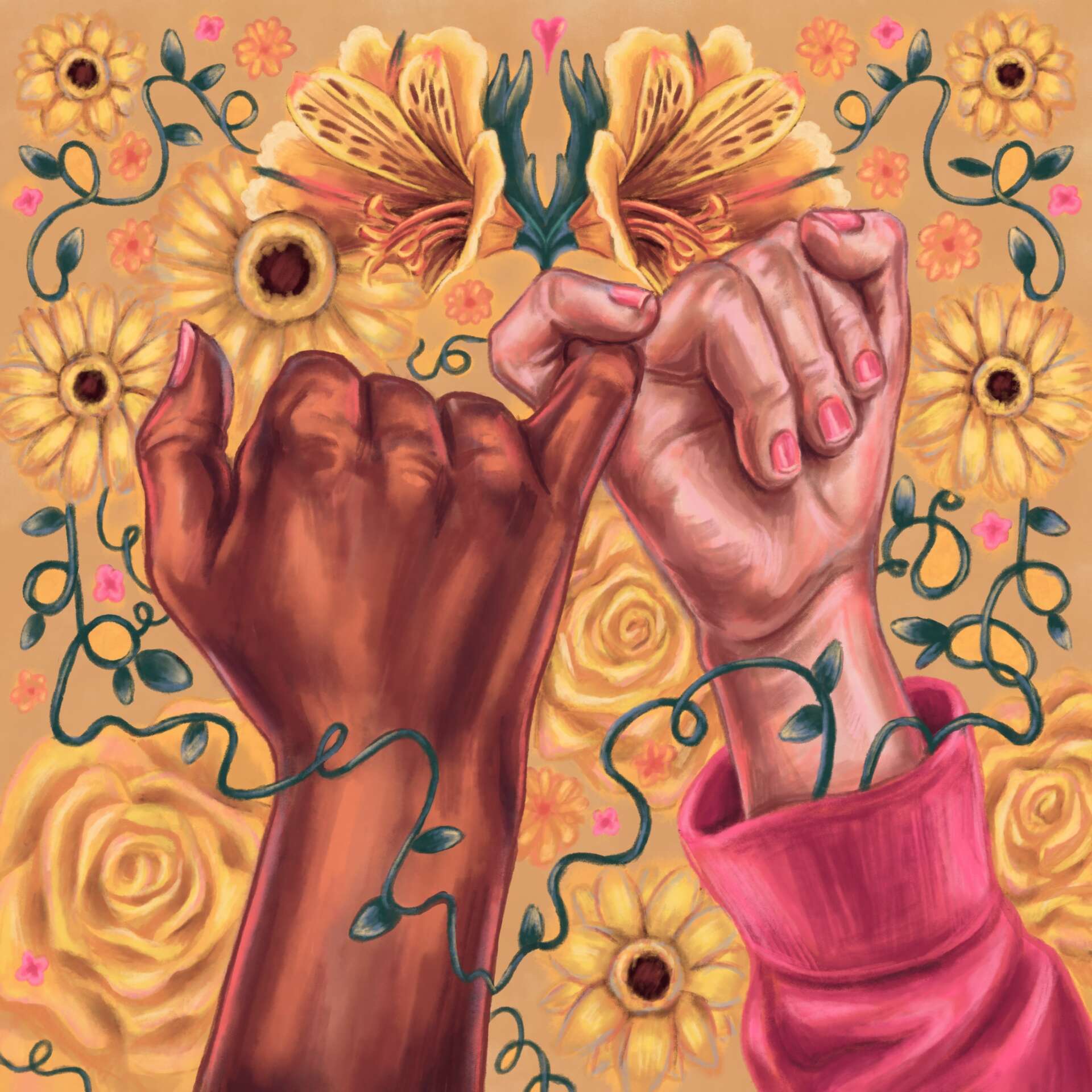 Hello, everyone! My name is Elenor Post, and I am a freelance illustrator working in publication and surface design under the name Elenor Makes Art. Since I was a kid, I have always been interested in learning about people, relationships, emotions, and life. Now, my goal is to create art and design that connects with others through those ideas. I also like to incorporate decorative symbolism, portraiture, cute animals, layered color, and pattern into my work! Currently, I study Illustration, Painting, and Graphic Design at the Savannah College of Art and Design and am preparing for my after school goal of working in-house while continuing freelance illustration. I especially enjoy illustrating for package design, home decor, children’s books, and editorial. I am constantly looking for inspiration in my everyday life, music, art, books, and other media, and I enjoy creating intricate and vibrantly colorful work in both digital and traditional mediums. From my personal hobbies to the community service and jobs I have worked on as Elenor Makes Art, art is at the heart of all that I do!