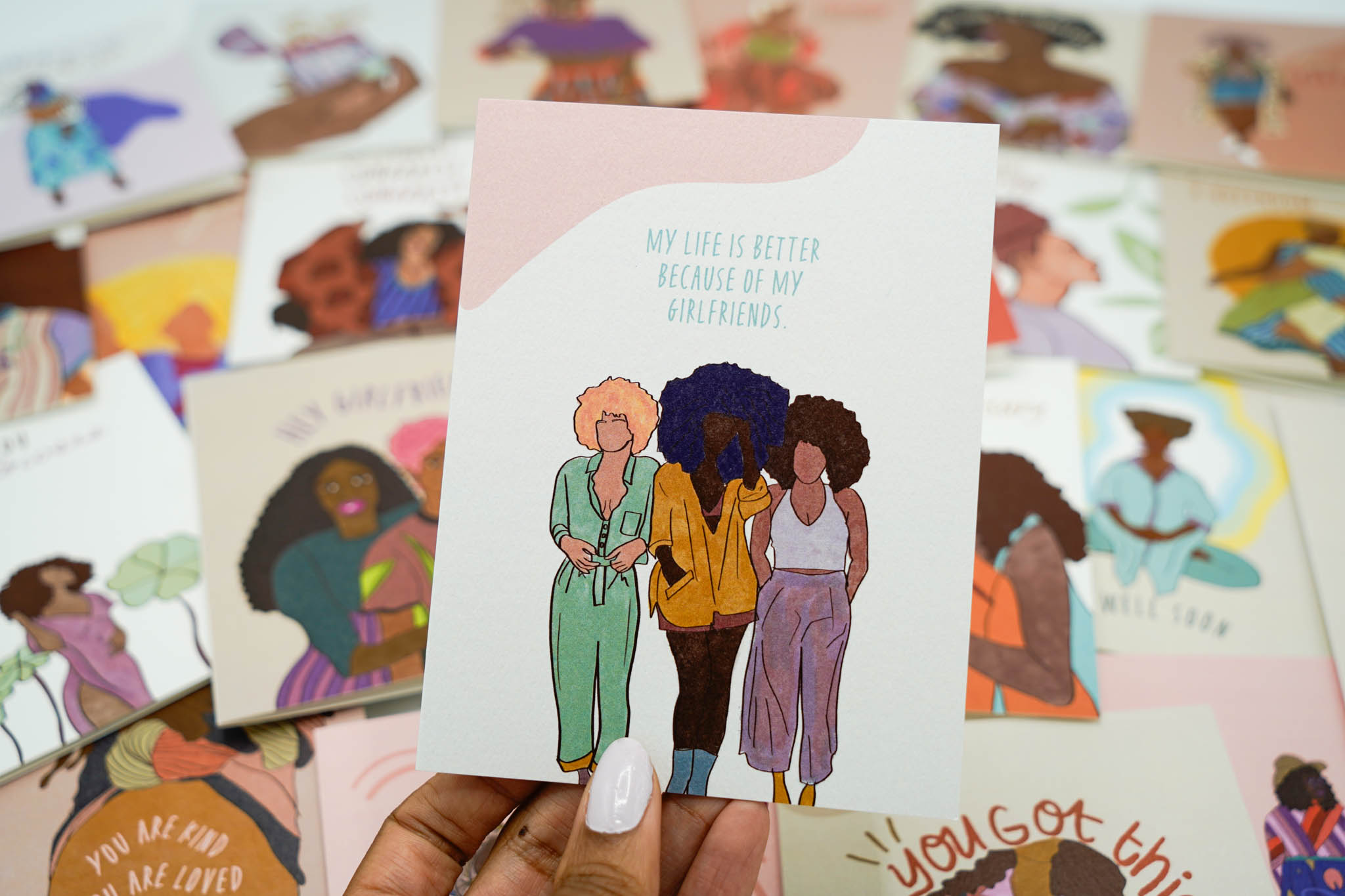 Today, our product line includes greeting cards and coloring books. These have become the heart of our brand because they help foster a sense of belonging. Through our greeting cards we explore inclusive illustrations and positive messaging. Our coloring books represent all body types, hair textures, and cultural nods to those often left unseen. While I am not actively creating new journals, we still provide our full collection through wholesale.