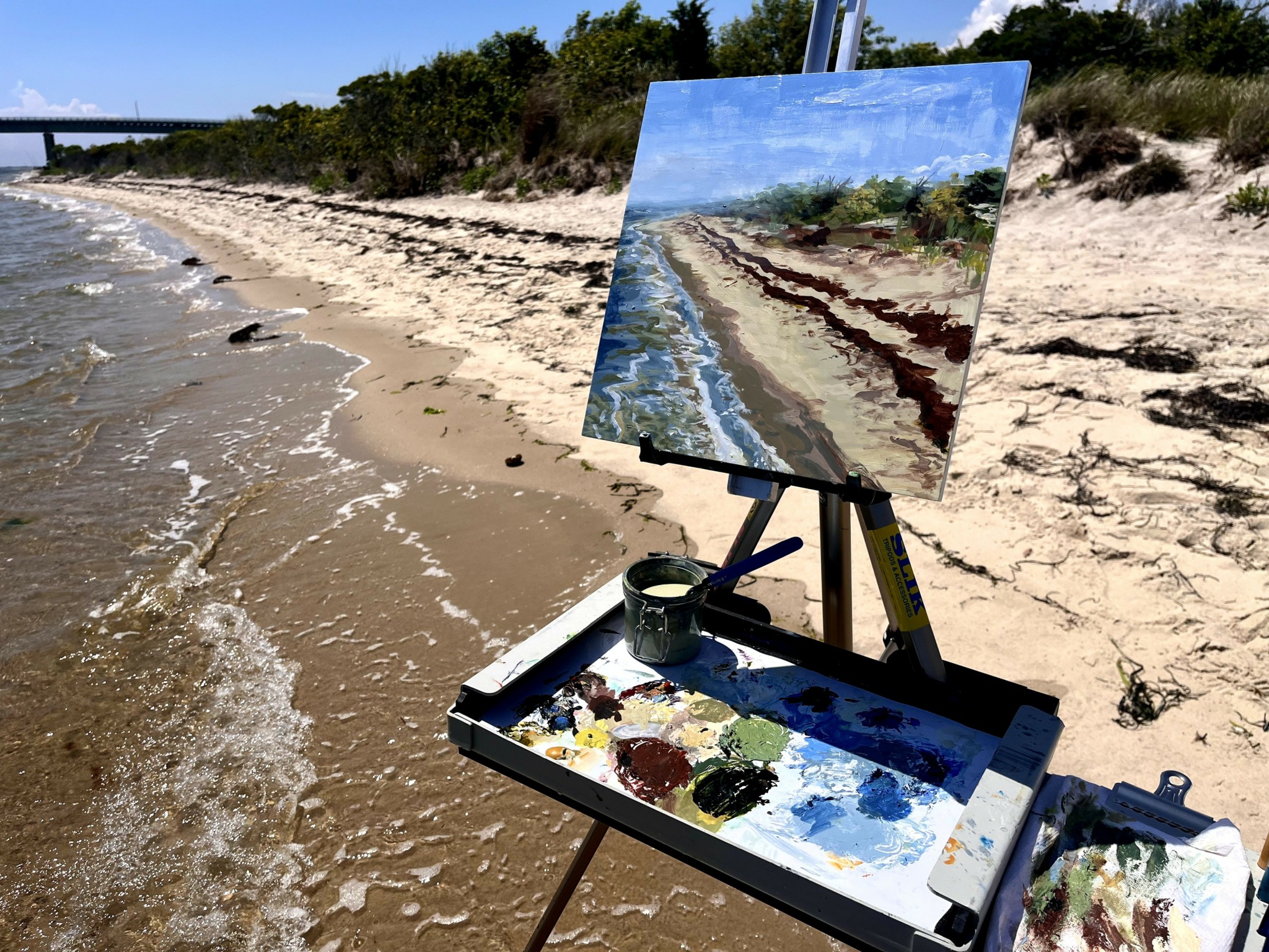I first developed an interest in depicting the landscape during my freshman year of college. In classes, we were focused on drawing still-lives and the figure while in confined studios. Wanting to break from that mold outside of classes, I had an urge to paint outdoors. It was that year I was introduced to a professor who offered a Landscape Painting class. I was lucky enough to take the class in my sophomore year, as the experience jumpstarted my full immersion into painting “en plein air” for the remainder of my college career. I was dedicated to driving to south shore beaches and town parks on Long Island to scout visually engaging scenery to paint with acrylics on a Strathmore paper pad or primed panel. I learned how important light and shadow were to the success of a landscape painting. I also learned how quickly the sun moves and how unpredictably the weather changes. Each painting session taught me more and more about the process.