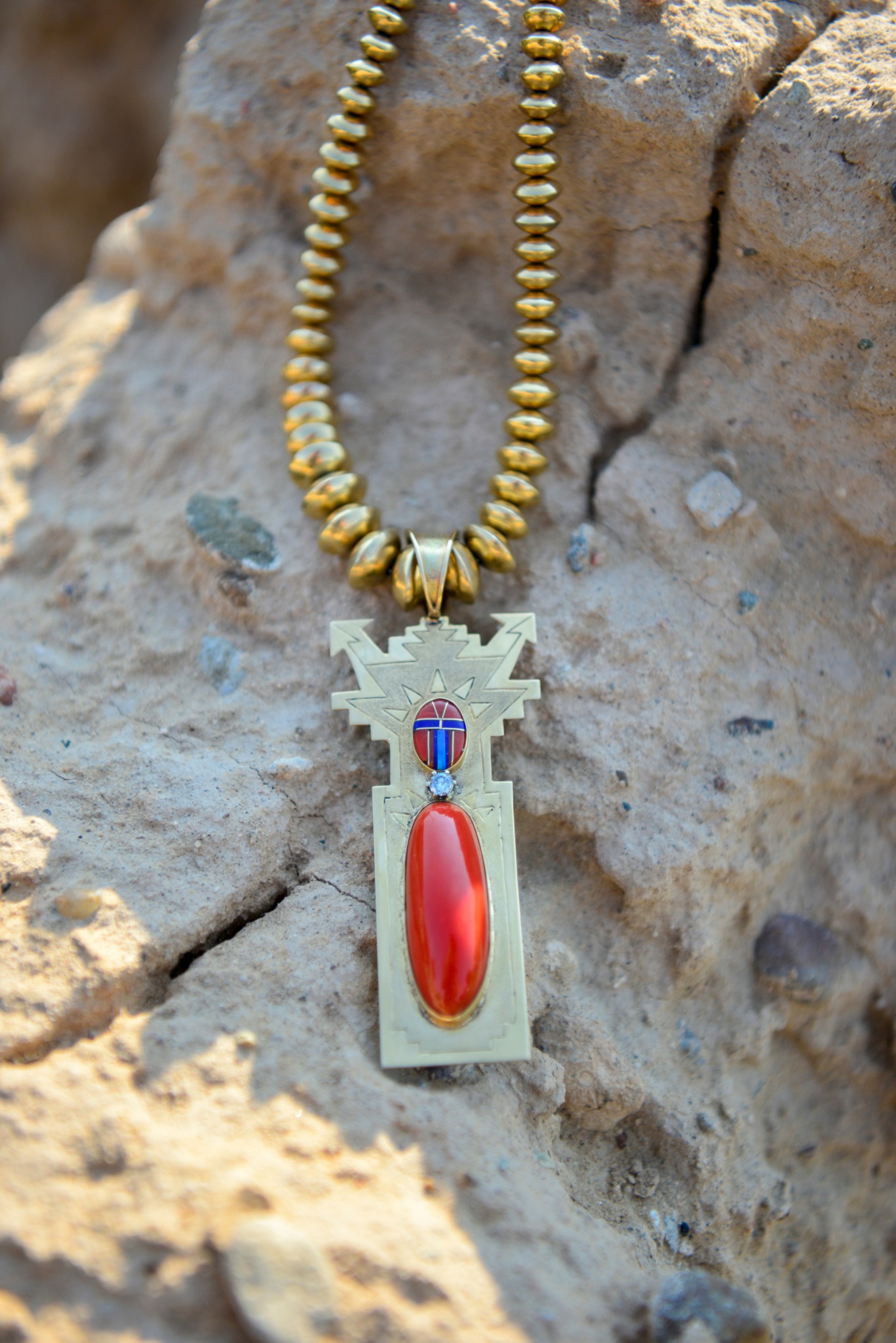 Prior to 2023 our work was represented by over 50 galleries and museums world-wide, but I was elected for a 2-year term to serve as a Tribal Councilwoman for my Pueblo, and we took a 2-year sabbatical. Since we were no longer creating full-time, we explored alternative materials for our creations such as wood and acrylic. Normally our materials of choice are Argentium Silver 14K-22K gold. Argentium Silver has a higher silver content (.940) than Sterling Silver, it is tarnish resistant, fusible and less prone to firescale. It has a brighter and whiter appearance than Sterling Silver and is made of recycled silver, making it an eco-friendlier choice. Precious and semi-precious stones, liquid ceramic, animal claws, various animal horn and elk ivory are some of the diverse ranges of materials utilized in our work.