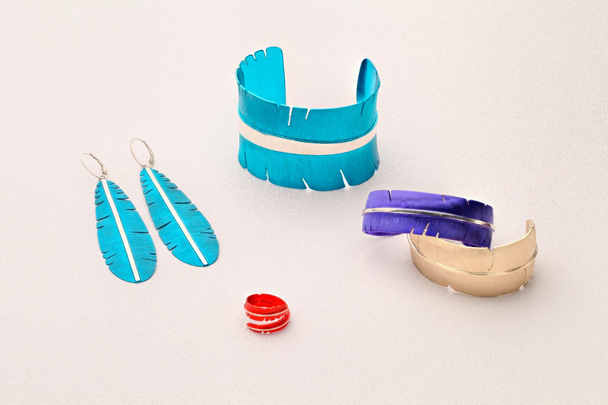 In 2025, we have commenced our artistic work once more all while balancing raising American Bison, farming, family and the formalities a business brings. While there are many designs made over the years, our family is known for the intricate feather design my father created 40+ years ago, the feather has graced many magazines world-wide and has been a featured item in two Smithsonian catalog series 30 years apart, as well as being carried in both the New York and D.C. galleries. For me, this was a proud moment to be selected for not only the catalog, but both galleries. I was able to duplicate what my father had achieved early in his career, but with my own twist. The addition of liquid ceramic enables me to add bright colors to metal turning it into a statement piece. The technology has allowed us to add vibrant colors to various designs. My most notable piece was a hummingbird necklace we worked on which had five colors on one piece, this was achieved by no one else at the time, the inventors included. The piece incorporated silver work, inlay work and the liquid ceramic in a harmonious balance. For us, creating is more than wearable works of art, it is creating memories and capturing moments in time.