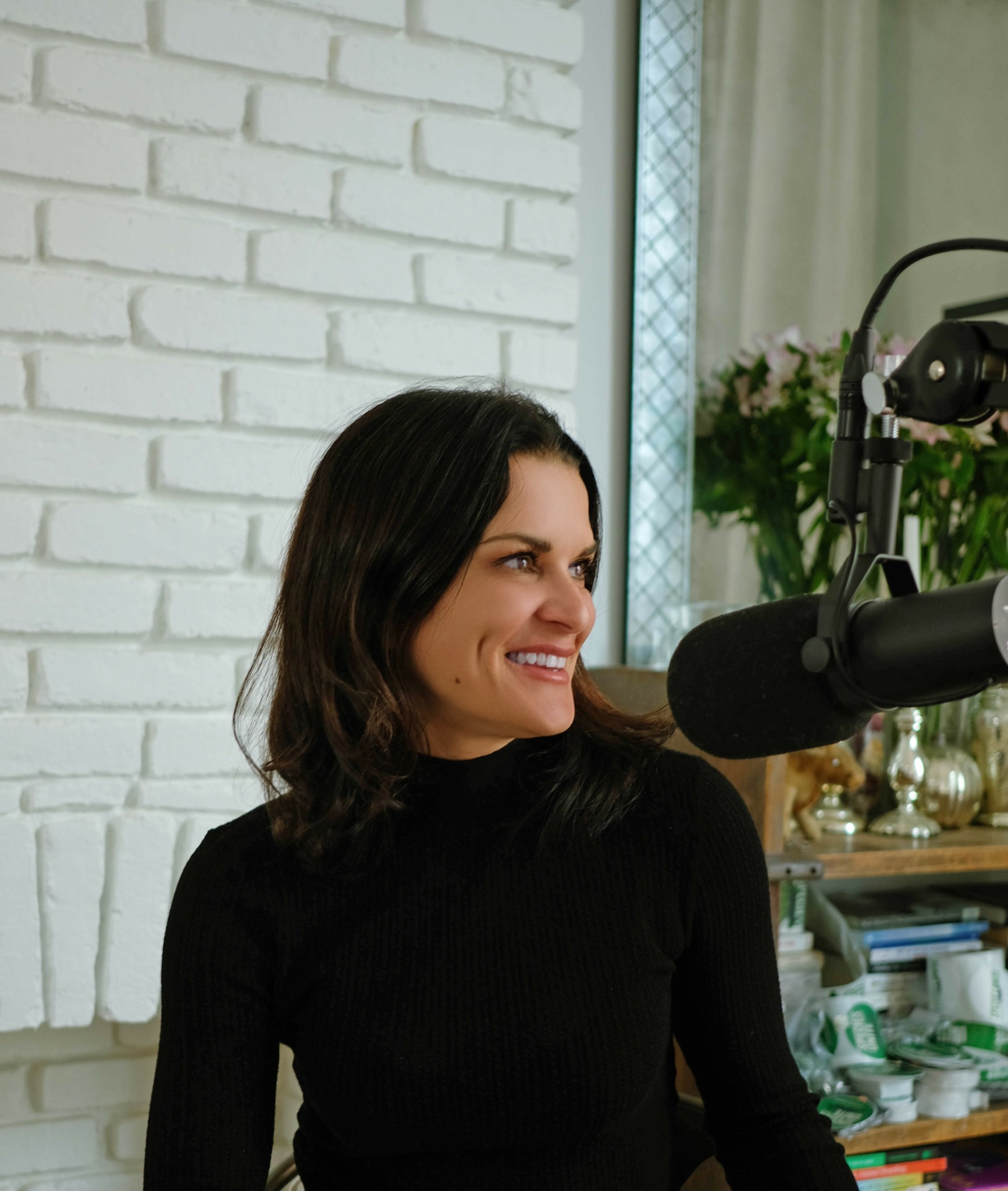 Clemence Poles – headshot with microphone