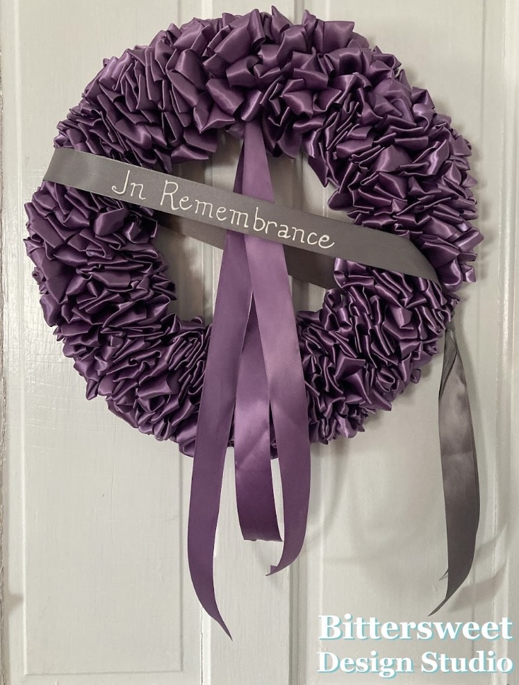 I had already been making ribbon wreaths so the transition to a mourning wreath was just a change of ribbon color. The idea of a making these wreaths came about when a friend’s father died, and again when my own mother passed away. Timing, supplies, and life got in the way of making those wreaths, but it would only be a few months before I added a mourning wreath to the inventory of my handmade shop on Etsy – Bittersweet Design, and it sold almost immediately.