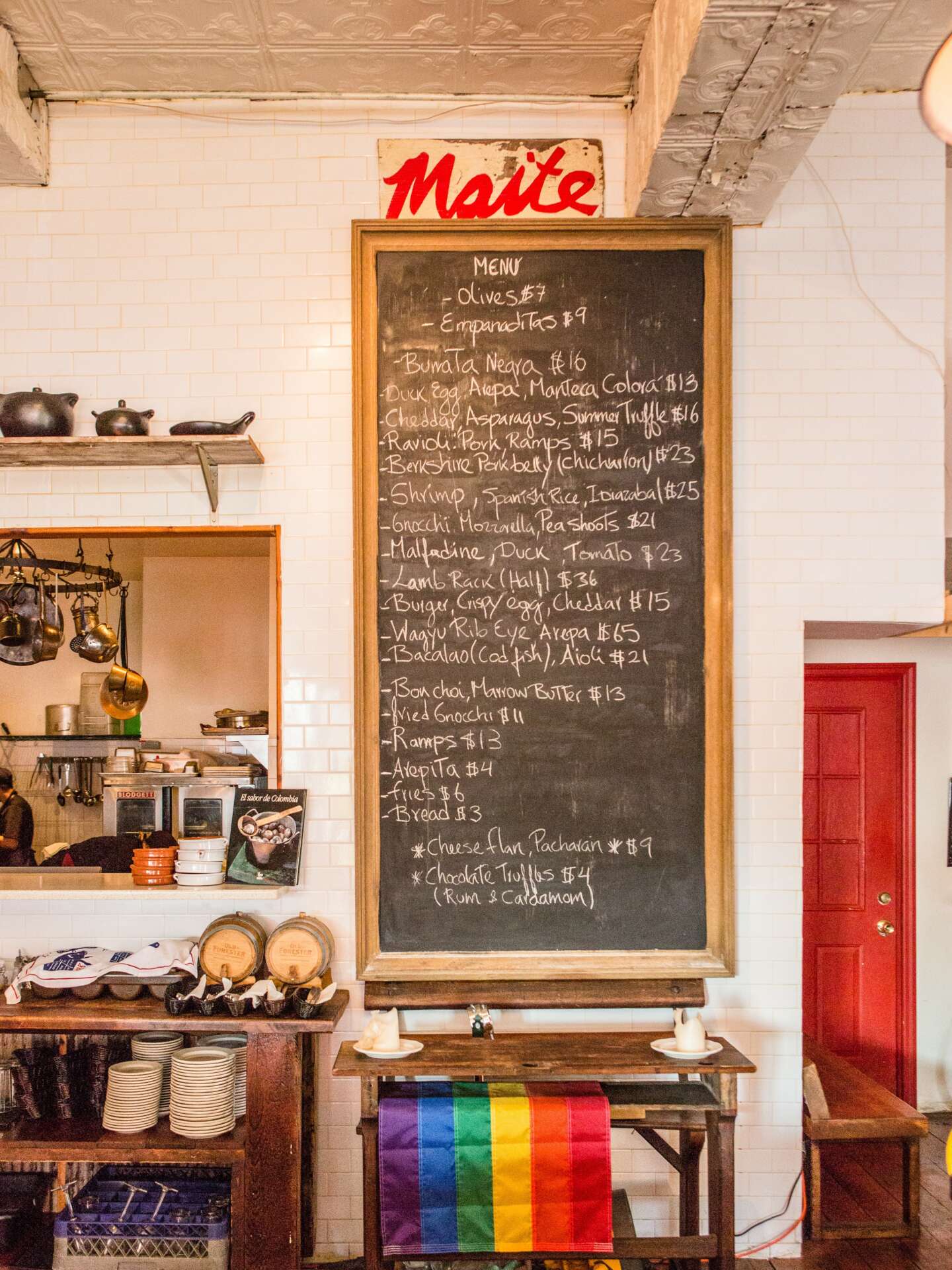 After high school, I moved to NY and began working in various kitchens throughout NYC. The work was hard and often grueling with long hours and little pay, but I fell further in love with cooking, despite the challenges. For me, cooking has always been more about love and connection, than anything else. I have had the privilege to learn from some of the most talented chefs in some of the most renowned kitchens in NYC, but I always knew that my goal was to have a place of my own where I could showcase food from my country and creations of my own imagination. So, after 15 plus years of working for other people, I committed to opening a restaurant of my own with my wife. We saved up as much money as we could and essentially boot strapped the operation, doing everything ourselves. We never had the safety net of any investors, so we knew that we had to make it work. We worked really hard for 8 months non stop, to get our place open, doing a lot of the buildout and all the design ourselves and refurbishing things like our bathroom door from the trash. But, the end result is that you can feel the love in the space. Everything that is there, every piece of art, photograph, piece of furniture has a back story of where we got it. And, fortunately, because I speak Spanish, many longtime locals in the neighborhood were willing to help. Bushwick has been a very welcoming neighborhood for us and I couldn’t imagine Maite, our restaurant, being anywhere else. Although its changing, the neighborhood is a predominantly Latin neighborhood and also very gay/queer with lots of young artists/creatives.