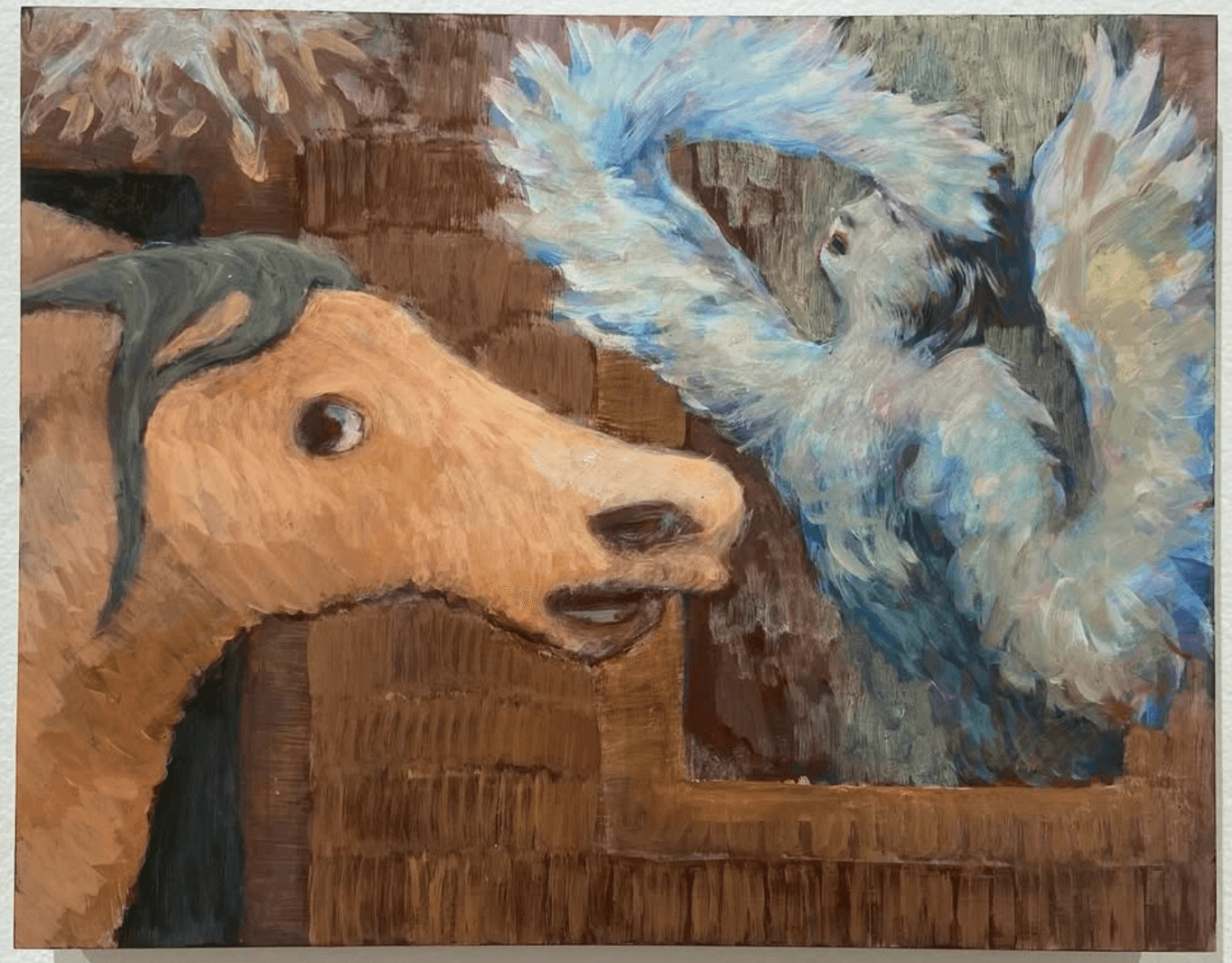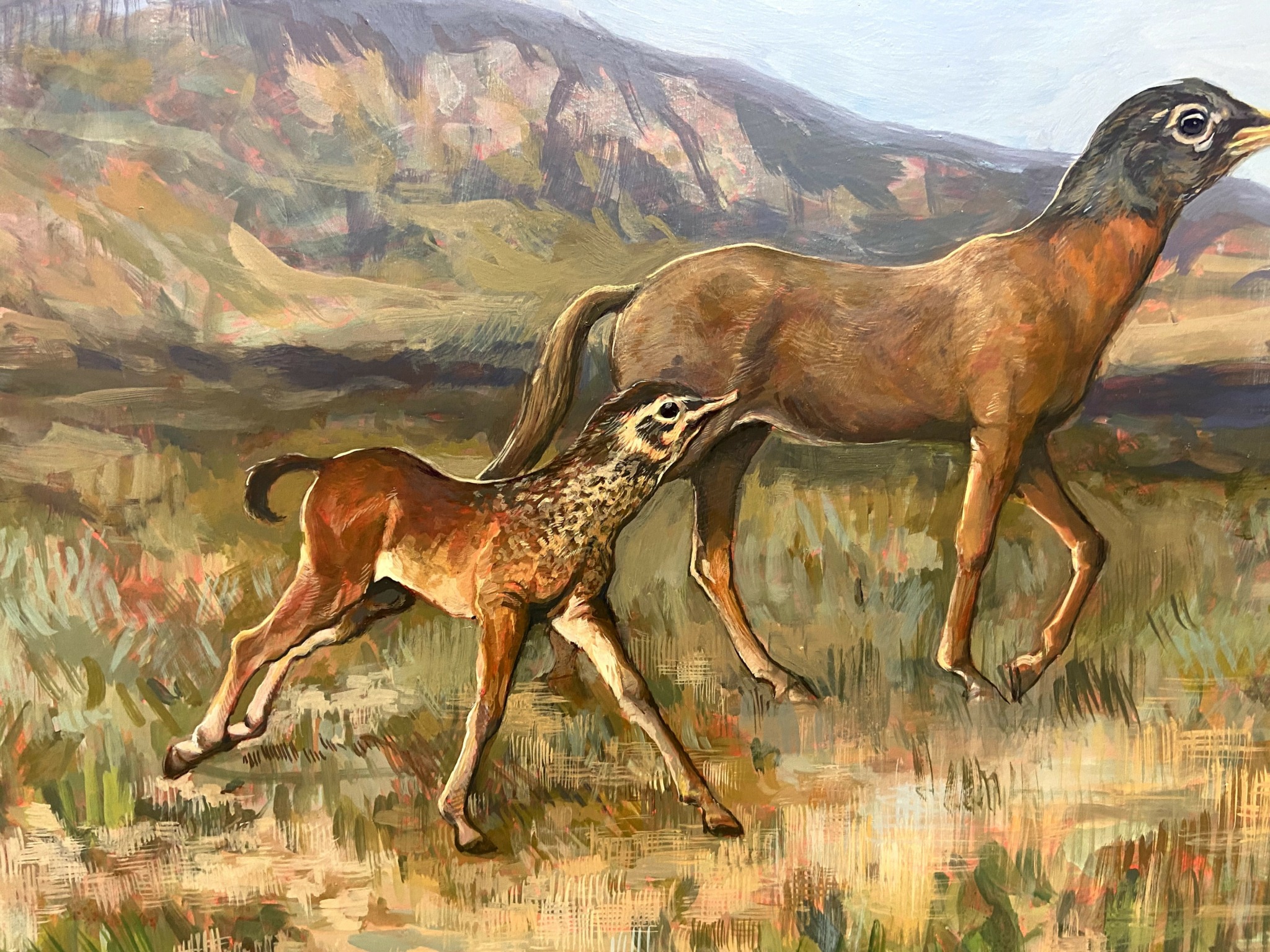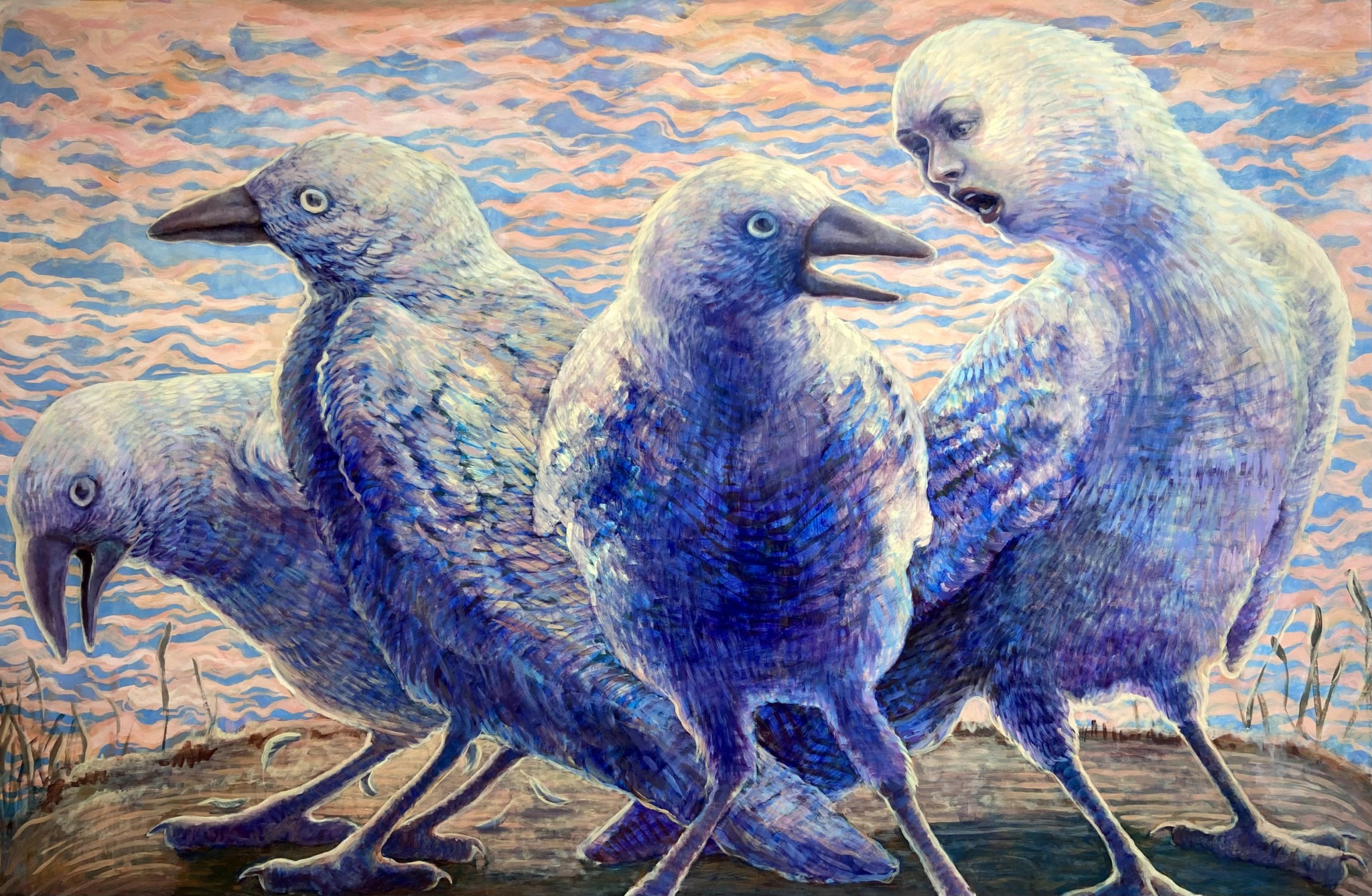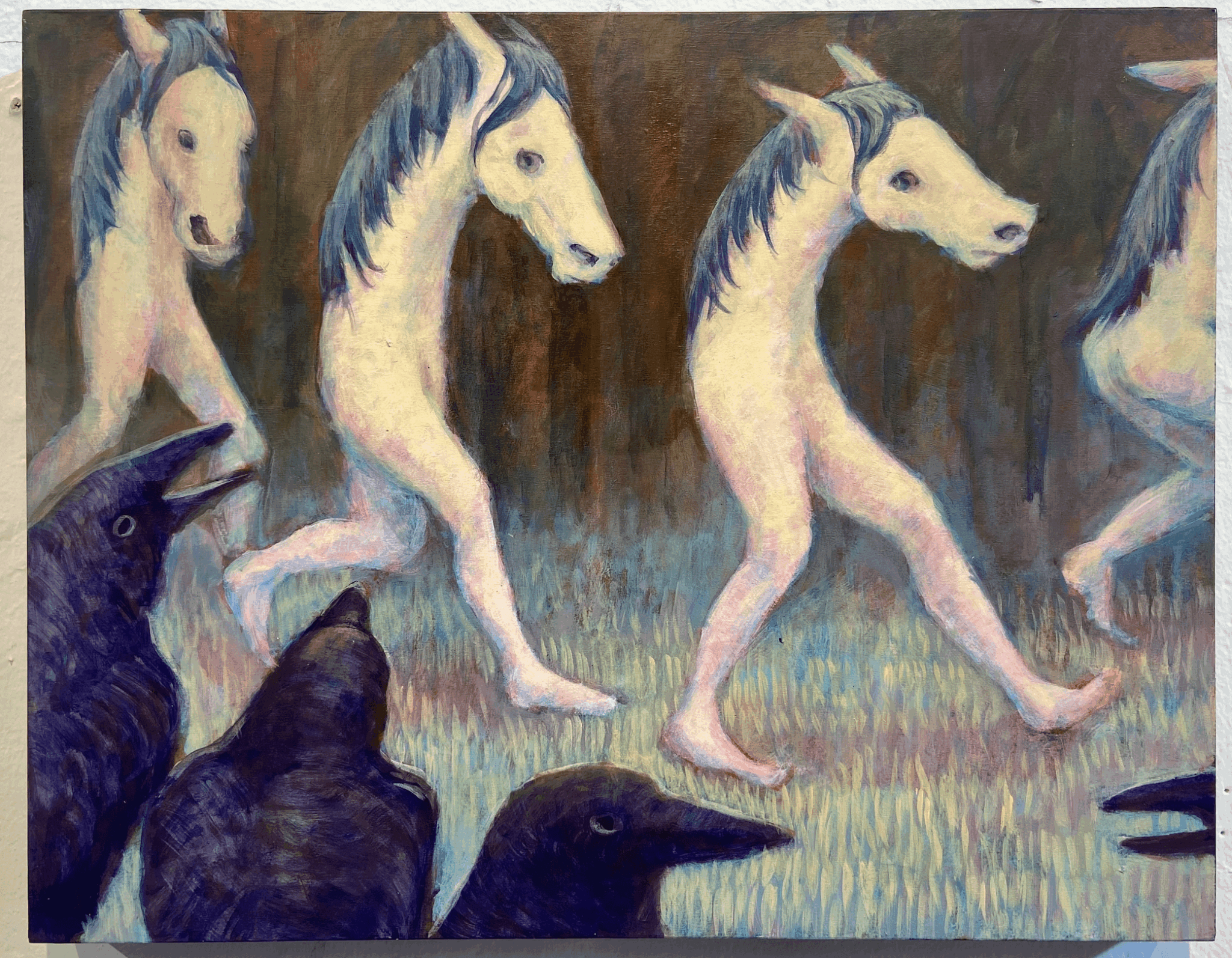 I’m a 21 year old painter from New Orleans. Currently my work is figurative. often merge different kinds of creatures. That started when I found myself enjoying painting animals but wanting my work to also have human figures in them. recetly in my work they have begun to represent a sort of transformation or metamorphosis.