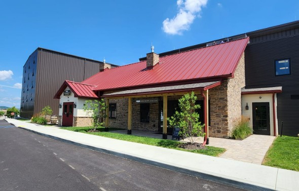 We operate out of a state-of-the-art two acre campus distillery. From the observation platform in our tasting room, which is modeled after an 18th century Roadhouse, customers can view our brew deck. We have four 1000-gallon fermenters and two copper-headed pot stills, filling ten 53-gallon whiskey barrels weekly. Next to the production facility, our whiskey is aging in a 5-story wooden barrelhouse.