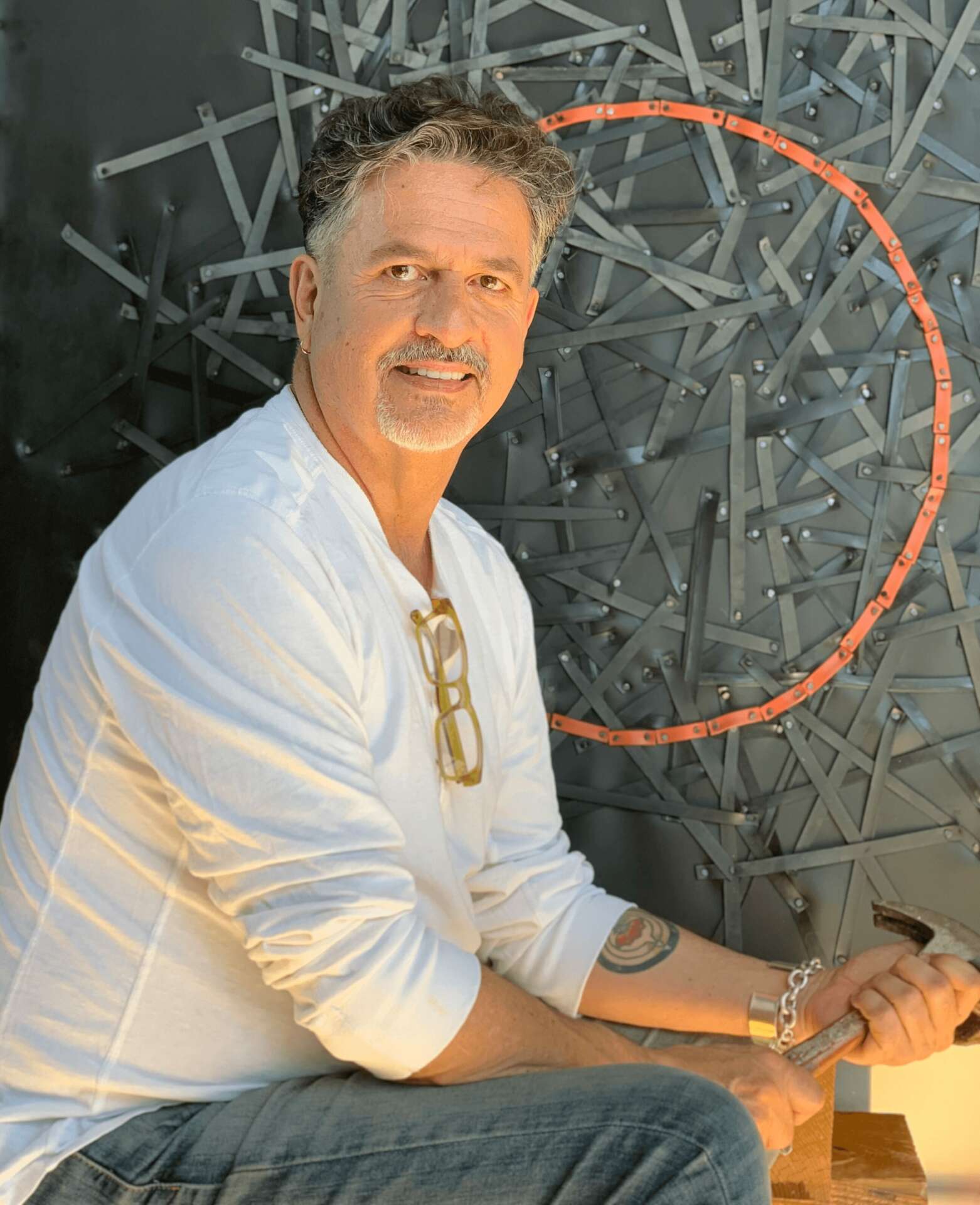 I was born and raised on a remote cattle ranch in southern Colorado, a small village a few miles from the oldest town in Colorado. As a child there were many opportunities to wander in the open landscape and there was also lots of time to wonder. To day dream, and to transform raw materials like mud and sticks into things. Mudpies eventually became pots, then sculptures. A drawing in the dirt could then be duplicated on paper and occasionally a canvas. My father, a rancher was also a public school teacher. He had studied art as an undergrad, and he’d share his art supplies (and knowledge) with me. My mother taught me to sew and cook and thus the old fashioned ideas about men’s work and women’s work were ignored. I joke now that I have restless hand syndrome and understand that it started early. Geographic isolation forced/fostered my imagination. As an adult I was able to study art, At Colorado College. It was there that I met my future wife, an ambitious and bright pre law student. Luckily for me her love and support enabled me to pursue my career and I in turn, supported hers. Miraculously we both built successful careers and raised two daughters.