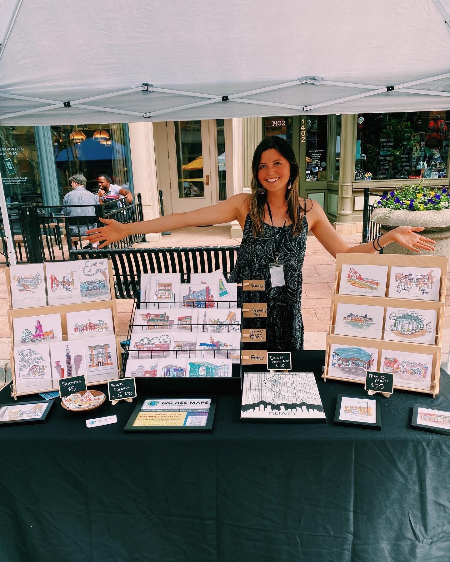 When I first moved to Denver, there were two things I did not have: any knowledge about how to get around the city and no artwork to hang on my walls. So, to create a solution for both problems, I painted a large canvas map, where I visually learned about the streets and connectivity throughout Mile High. I posted the map painting on my social media, which my friends loved and started inquiring about if they could get one of their city. From there, Big Ass Maps was born. It was not a huge business, as the maps took a while to create and my clients were my friends and family, but I loved the idea of making my hobby into a side business. Then COVID happened and during that time, I turned to art as an outlet. I fell in love with drawing again, particularly drawing buildings. During October 2020, I wanted to challenge myself, so I participated in Inktober. Inktober is a national drawing month, where artists given a word and they can make a drawing based on their interpretation of the word. While I did not participate in that form of Inktober, I created my own and drew a building around Denver every day that month. I posted these drawings on my social media, and they started getting reposted by organizations, business, etc. It was the first time the public eye was engaging in my work!! People and businesses started reaching out after, asking about custom work and my business grew. Today, while I do still create maps, my focus is building drawings. I make custom drawings for clients, along with creating my own series every other month to feature different local businesses around Denver.