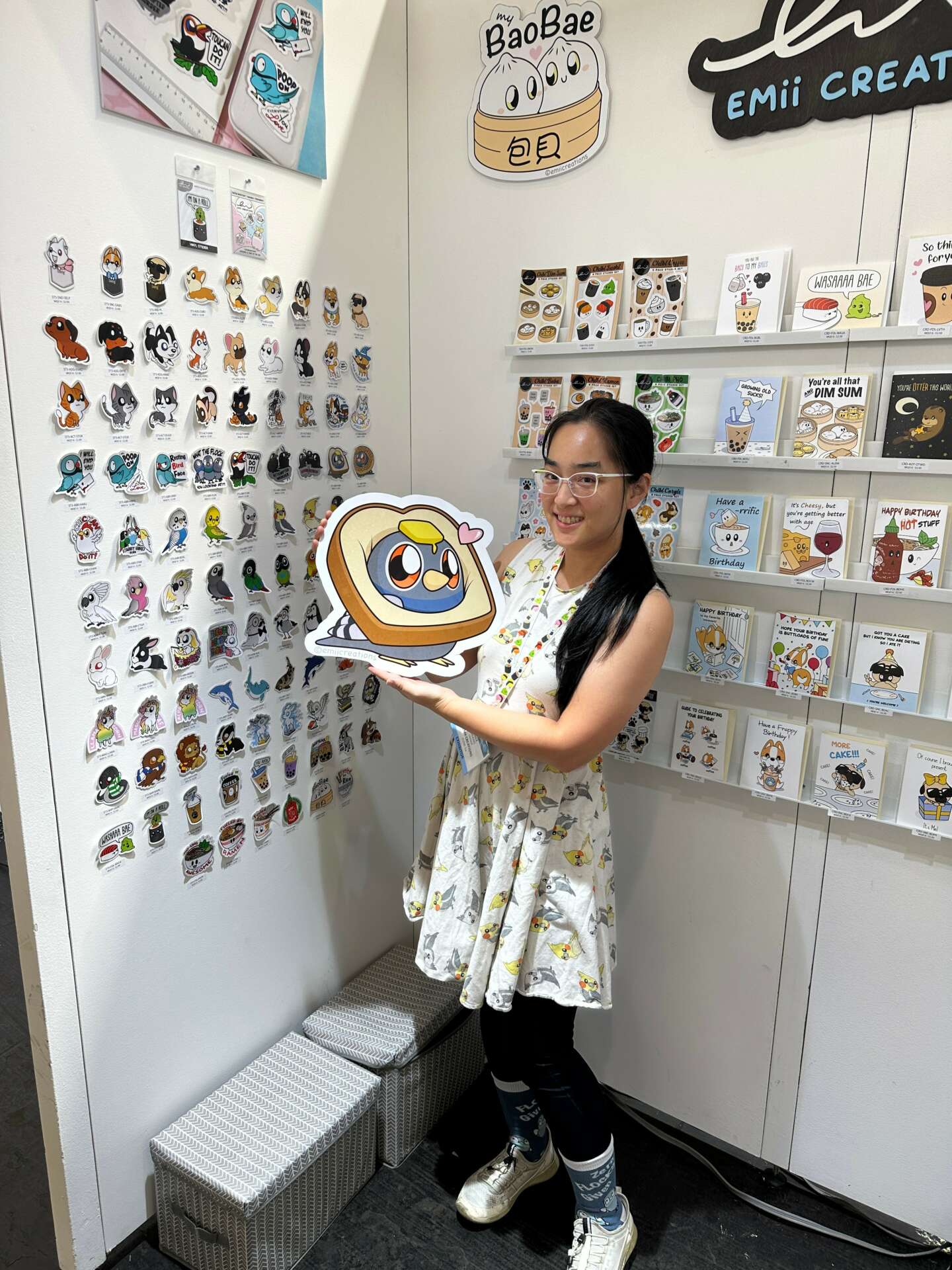 My parents were the typical high-expectation Asian parents. A lot of people are surprised when I tell them that my parents were one of my biggest supporters in the beginning and to this day. It wasn’t because they were big advocates for art or entrepreneurship. They were big advocates for my happiness and health. I had a full-time 9-5 job before my art business. However, 2 years in, I was miserable, stressed, and unhappy to the point I was physically sick every other month. It got so bad that my parents were the ones to ask me to quit and take a break. During my break, I took my ‘hobby’ selling hand-made plush keychains on Etsy more seriously. My break time ended up being a one-person factory of creating endless tiny plushies. My parents were happy to support me because I was happy, not stressed, and passionate about this newfound work. They were even there for my first in-person vending event, my first pop-up at Macy’s, and my first wholesale trade show. The biggest thing they did right was focus on me, my happiness, my health, and not my work.
