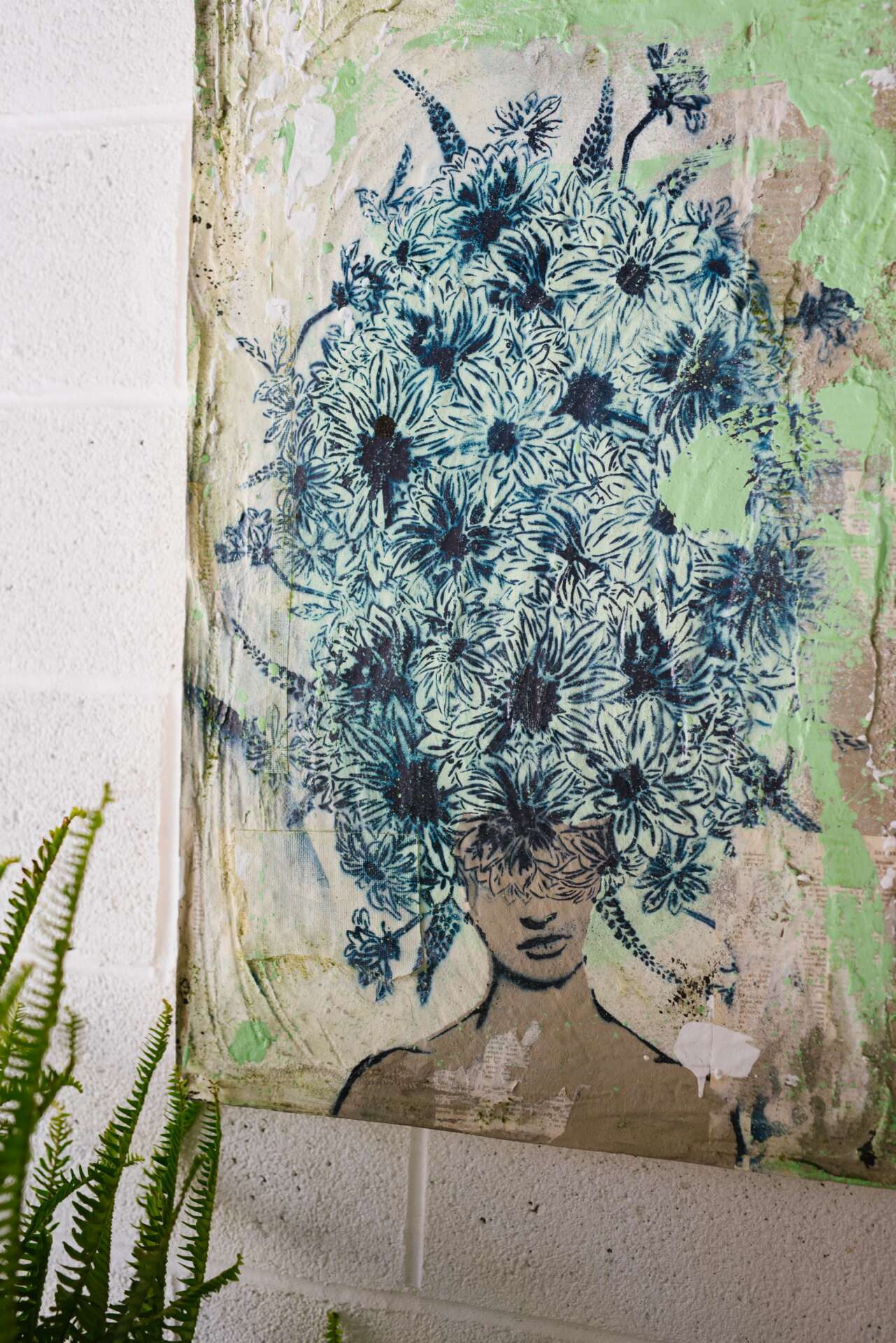 The use of concrete came from my fascination with old abandoned buildings, particularly in the Philadelphia area. From the graffiti scrawled across their surfaces to the vines and moss steadily reclaiming them, these abandoned structures became my visual language. This body of work is also a very clear example of combining my diverse skill sets, from digitally designing stencils to sculpting a textured surface made of concrete.