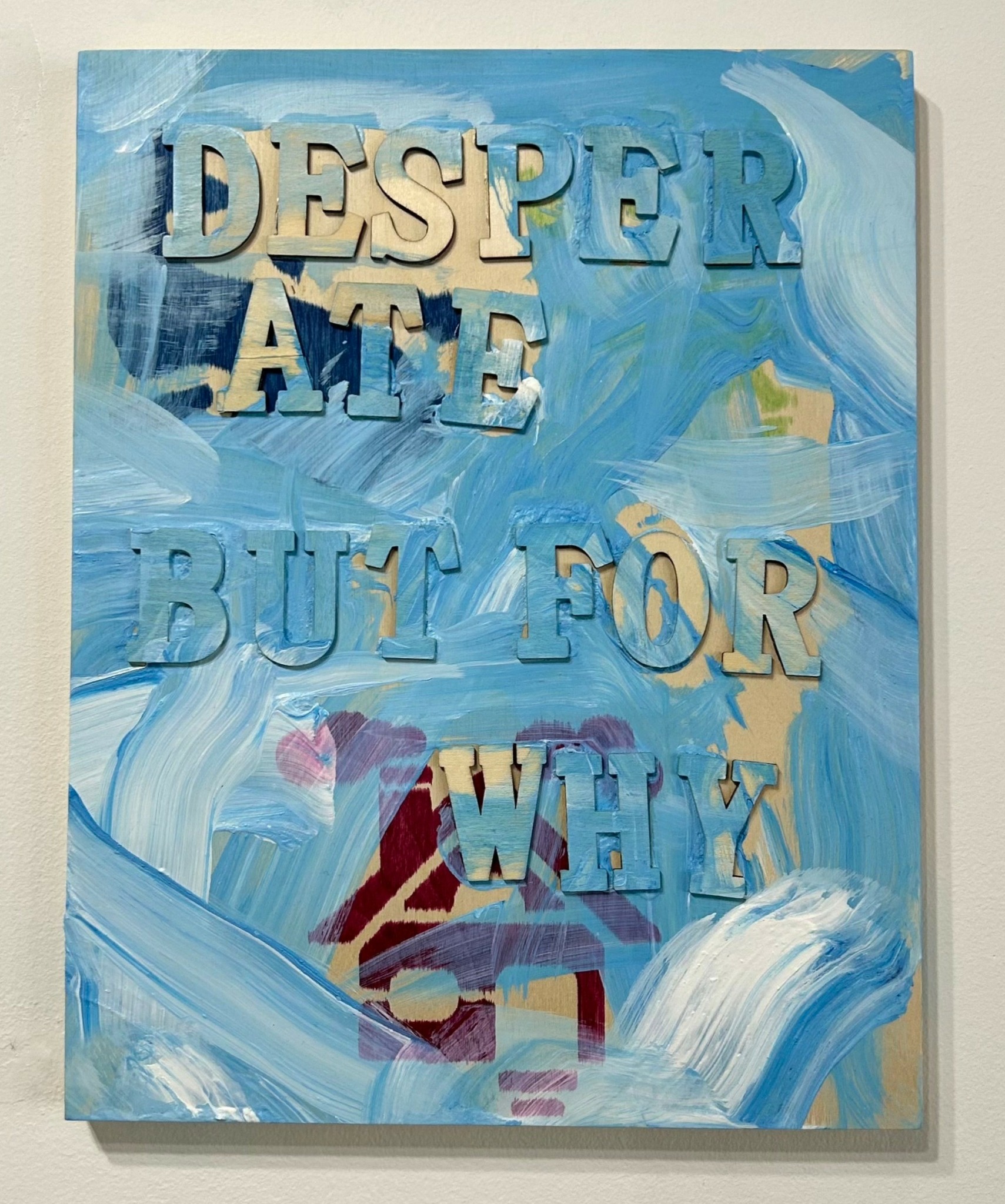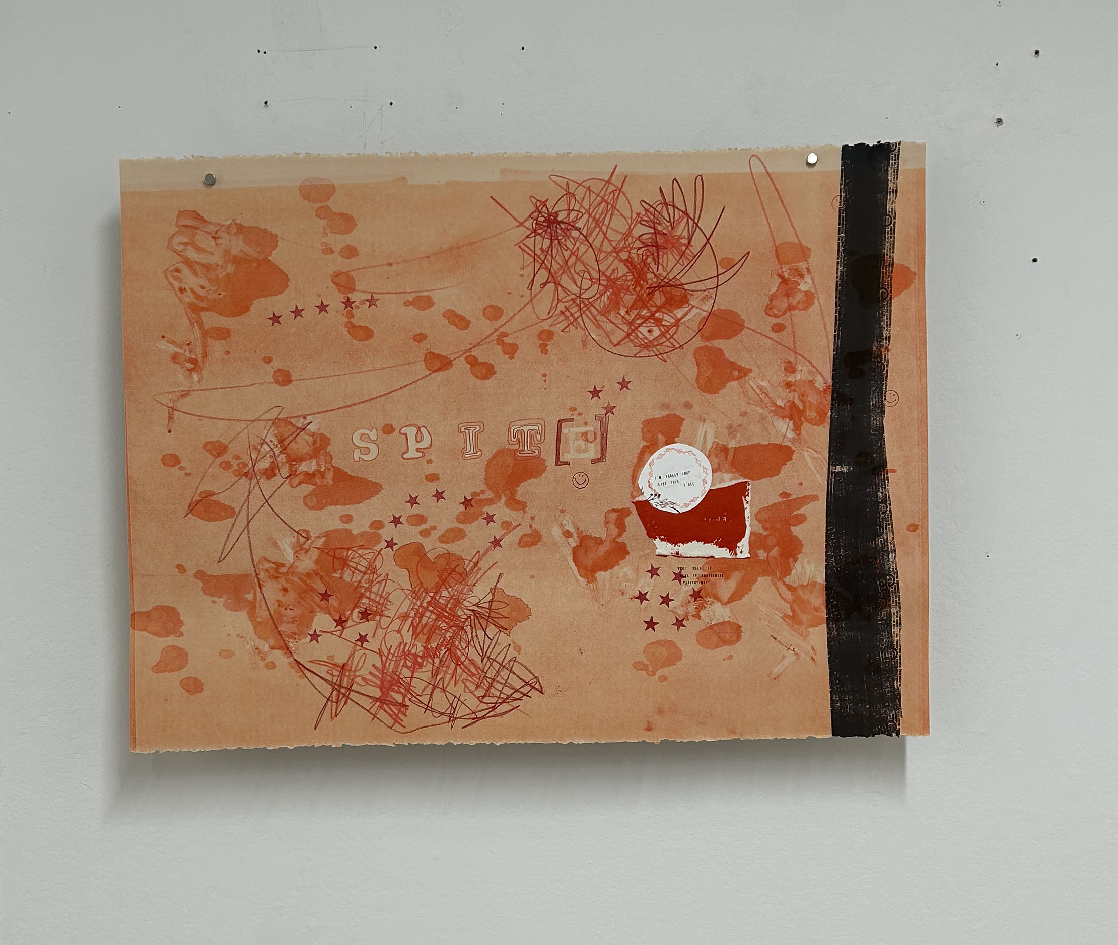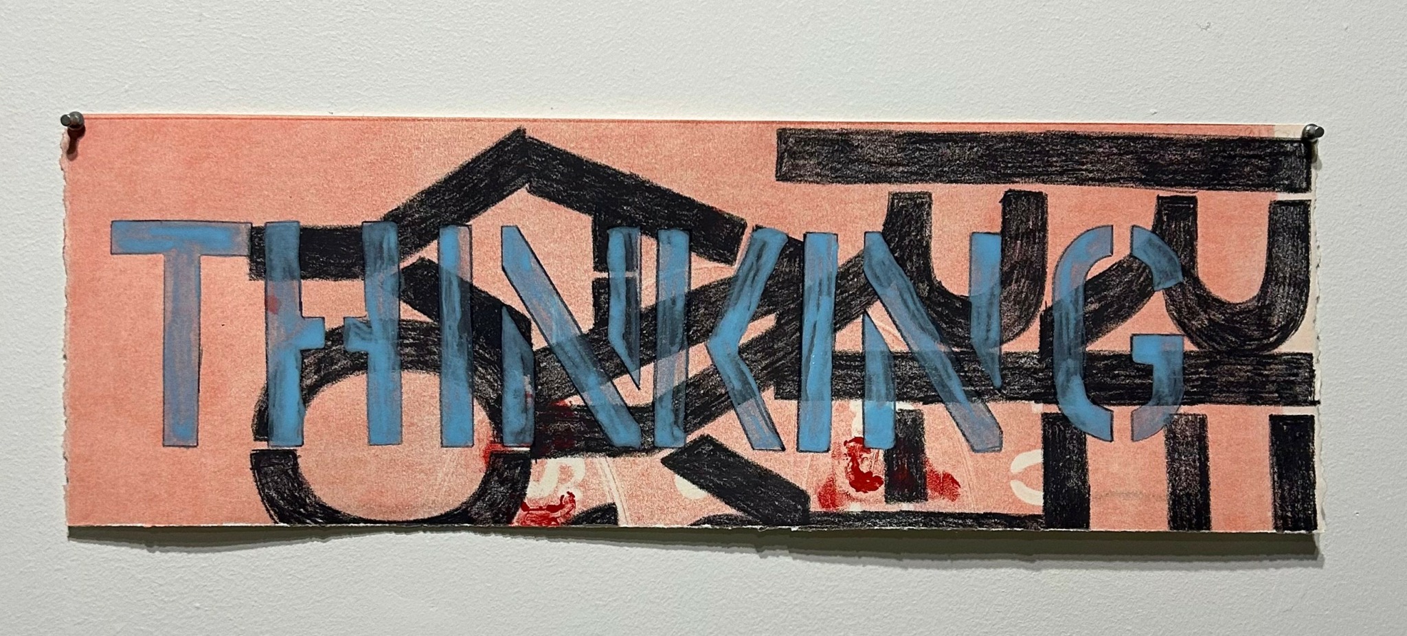 My name is Emily Nicole Murray and I’m an artist. I learned I could major in art when I was a junior in high school but knew absolutely nothing about the art world before deciding I was going to be a part of it. I set my mind on the world of fine art when I was in my third year of college and have been furthering the development of my craft since. I work primarily in painting, drawing, print media, and writing. My practice speaks to the tension, time, and layering between trauma, grief, and humor. I use text broadly, pulling from my everyday experience to unpack nonlinear narratives and what it means to build and interact with the world around me. I’m interested in the patterns of thought that connect all of us and the experiences that many share but don’t always talk about for fear of being judged or misunderstood. As much as we’re all different as people, we’re all still human and it’s quite a messy thing to be.