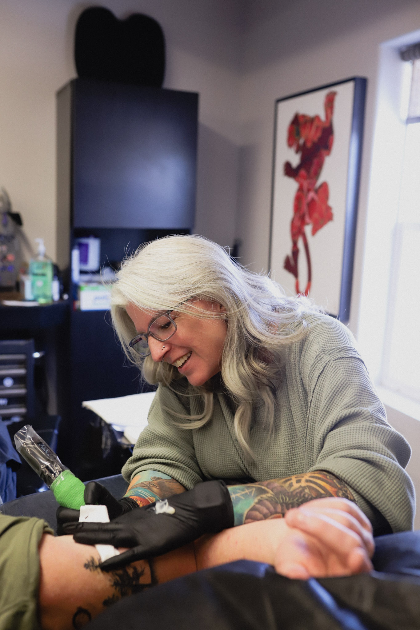 After completing my apprenticeship, it took me another three to four months to find a shop that would hire me, but I finally became a professional tattoo artist. Tattooing brings me immense joy; while I also love my skincare work, if I had to choose one passion over the other, it would undoubtedly be tattooing. I’ve learned so much from the talented artists and mentors I’ve encountered in various shops, and my philosophy is to never stop learning. I recognize that there’s always more to discover, and I still feel like I have a long way to go in my tattooing journey.