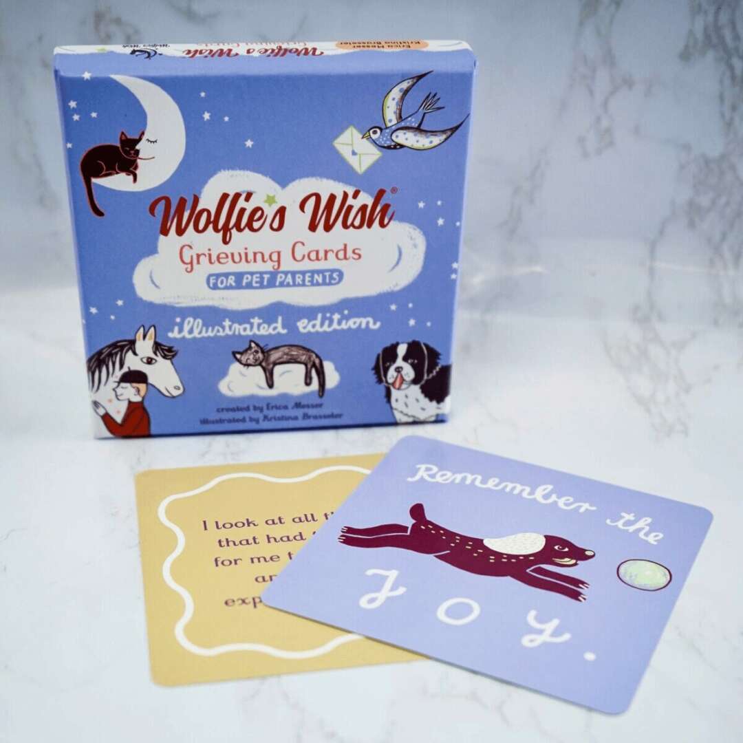 I got into my business because pet loss grief is often ignored. Many pet owners search for grief support and are unsure where to turn. I’ve created books, affirmation card decks, sympathy cards, coloring books, activity books, and guided journals to help adults and children process the loss of pet. We also have a virtual community and free resource library so pet owners can connect to other pet parents in similar positions. The Grieving Cards helped me immensely in my grieving journey and I hope to help fellow pet parents find a bit of light and encouragement during that challenging time.