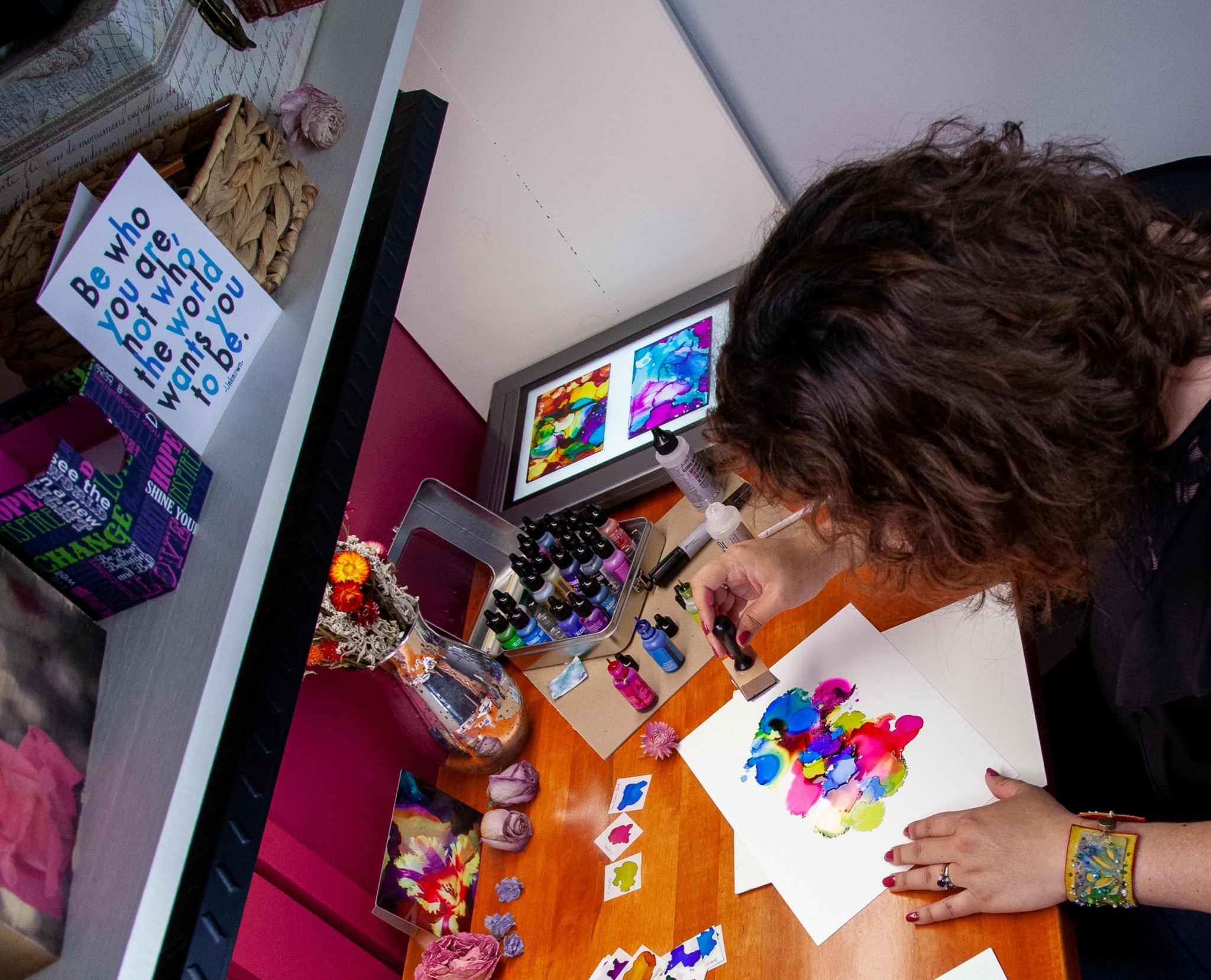 I strive to emulate that through my practice. To make a painting or series of paintings based on the idea of “should” for example. “I should know,” “I should eat,” “I should be,” our favorite phrase used to beat ourselves up for something. I then take that and create a beautiful flower portrait using it. The goal is to discover a healthy answer to “I should” through the process. It also serves as a reminder that we are made even more beautiful and unique through our challenges. A lesson we often need repeating.