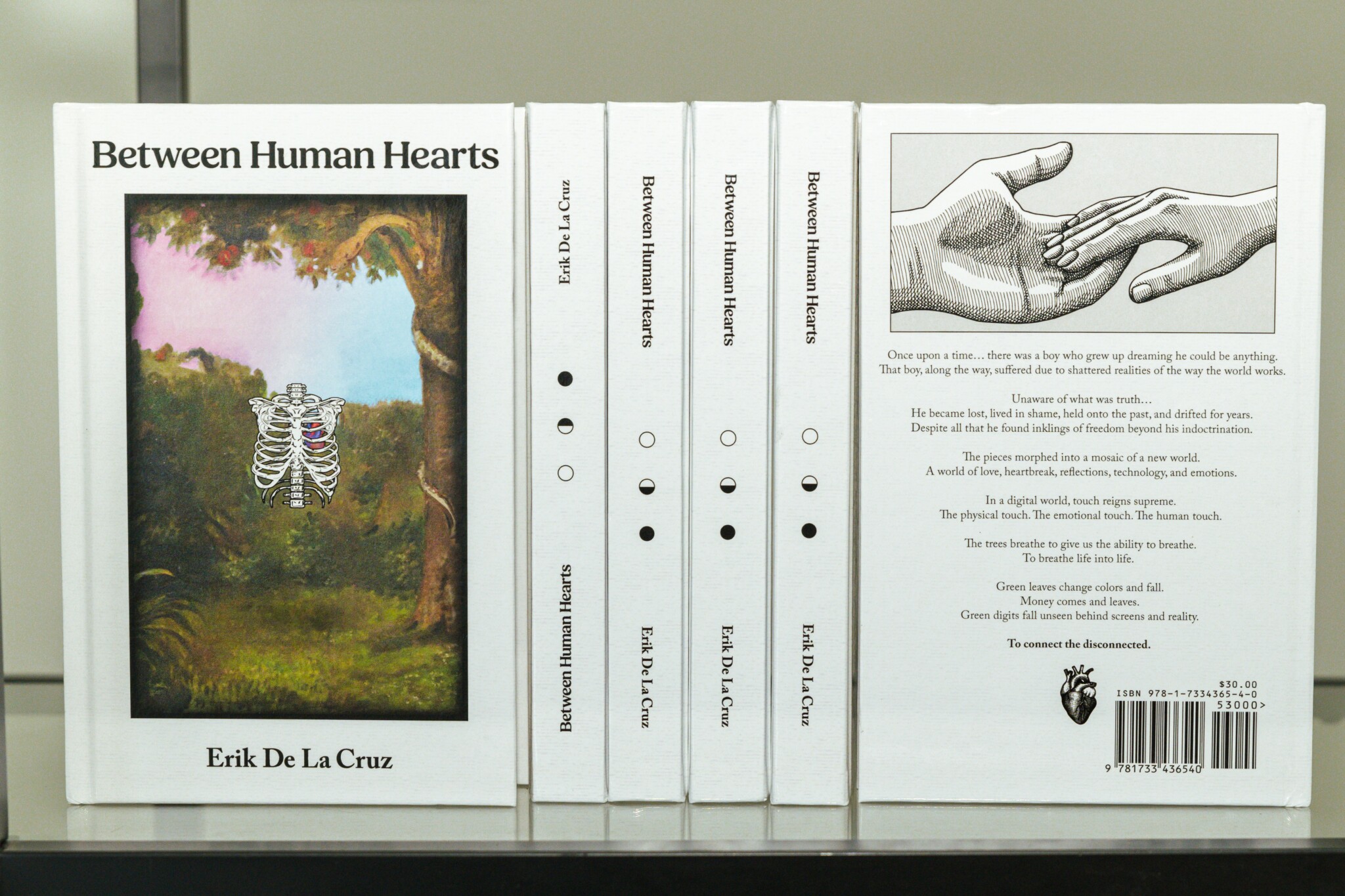 The process of Between Human Hearts was a journey where, in my head, I had completed the book over a hundred times. There was constantly more to say when I reopened the book to finalize it and I knew I’d discover more about myself each time I dove in. It’s the most meaningful creation to me because not only was it the most strenuous but it was catharsis in real-time through an art piece. It’s my magnum opus while understanding I’m far from finished impacting the world. This book starts as the cycle of love but is about understanding human connection in a digital age. By starting it, almost ten years ago, the landscape was vastly different. I was predicting the negative implications of phones, social media, and their addictions. As I was finalizing the book, I could see the positive tendencies it has to connect us to people outside of our immediate perimeter. That was a radical shock in the tone and story which was the final piece of the puzzle. Once I could see the full scope of the topic, the book wrote itself. The intention of technology or the use of it became a vital realization that made me reflect on the purpose and why I wrote the book in the first place. I understood the meaning of social media, how it draws us closer or separates us, and the ability to harness memories in pixels.
