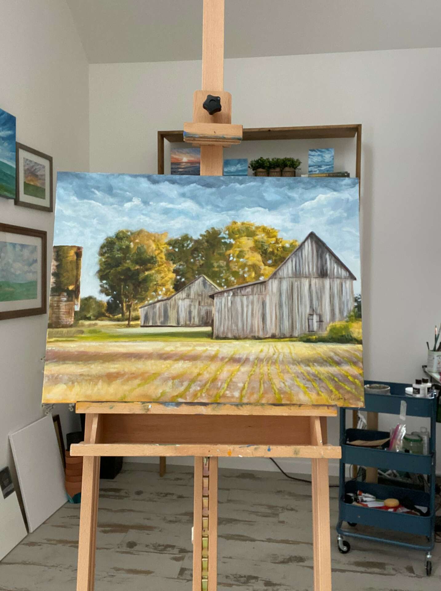 It’s been almost three years now since I started my art business and publicly began sharing my work. I’m an impressionist landscape painter, who sometimes also dips into painting portraits, animals, and florals. Much of my recent art is painted in acrylics and is born from the act of getting caught up in the beauty of my rural surroundings. Growing up in the Chicago suburbs, followed by a few years in Southern California, the contrast upon spreading new roots in small-town Michigan has helped me realize how nearly automatic it is to get tossed around in the daily hustle, particularly with the present-day’s glorification of being busy. I paint to celebrate the peace and delight in the daily happenings around me and as a way of practicing my intentional living.