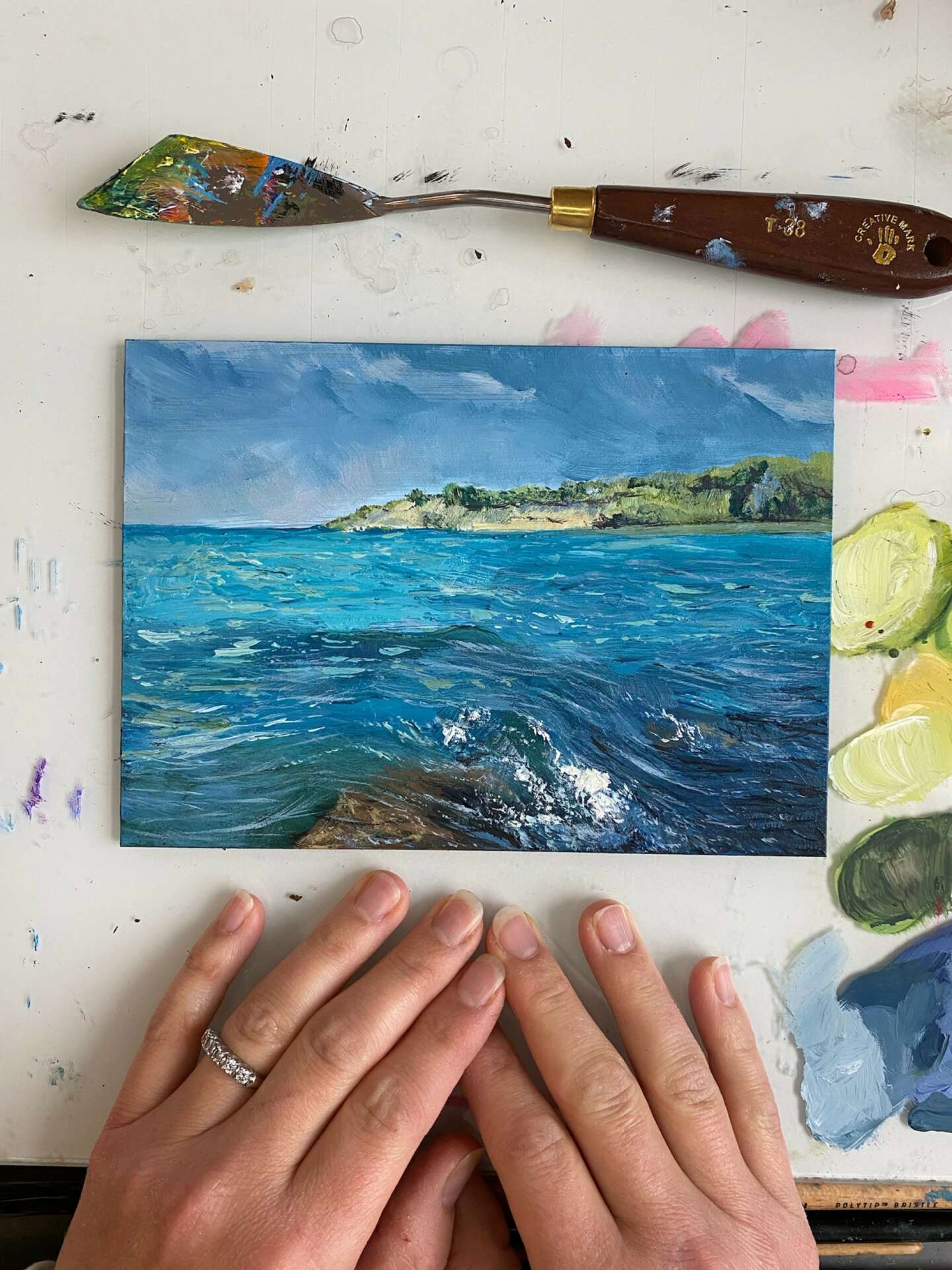 The most rewarding aspect of being an artist is when one of my paintings finds its home. Paintings bring up memories and stir up feelings, and often times they link us to special places and people in our lives. I love when a person welcomes home a painting and shares with me why they connect to it or what meaning it brings to their life.