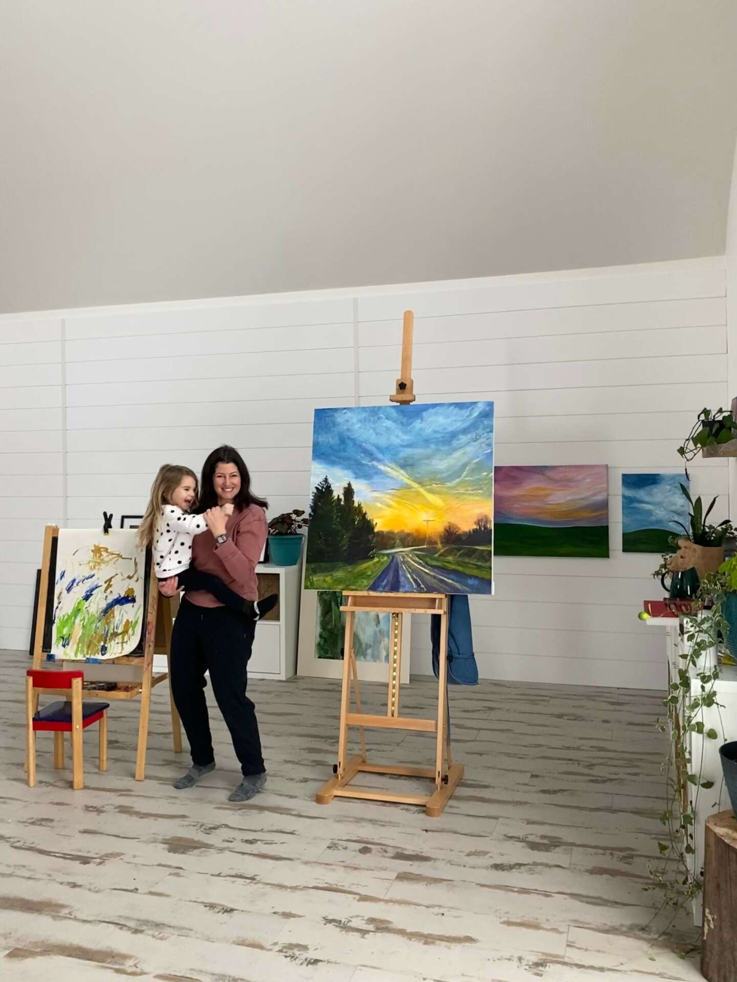 I’ve loved drawing and painting for as long as I can remember, but I had a really hard time giving myself permission to work on my art after finishing graduate school and starting a family. I had worked for a few years as an Art Therapist before choosing to stay home to raise my four children. I didn’t want to miss a thing when it came to them. Everyone always talks about how babies don’t keep, and that is wildly true. I remember one time on maternity leave when I was pregnant with my oldest, I spent the afternoon in nesting mode filling his closet with tiny newborn-sized clothes. Not even a month after he was born, it hit me that he had outgrown all of those clothes and would continue to do so month after month. The tags “0-3” didn’t really strike me until he was there, filling out those onesies, and especially since painting isn’t viewed as a typical career, I felt like mothering was my one priority— art would have to wait. I dove way into my photography hobby instead, which let me savor all the details of family life and eventually lead to starting up a home-studio portrait business.