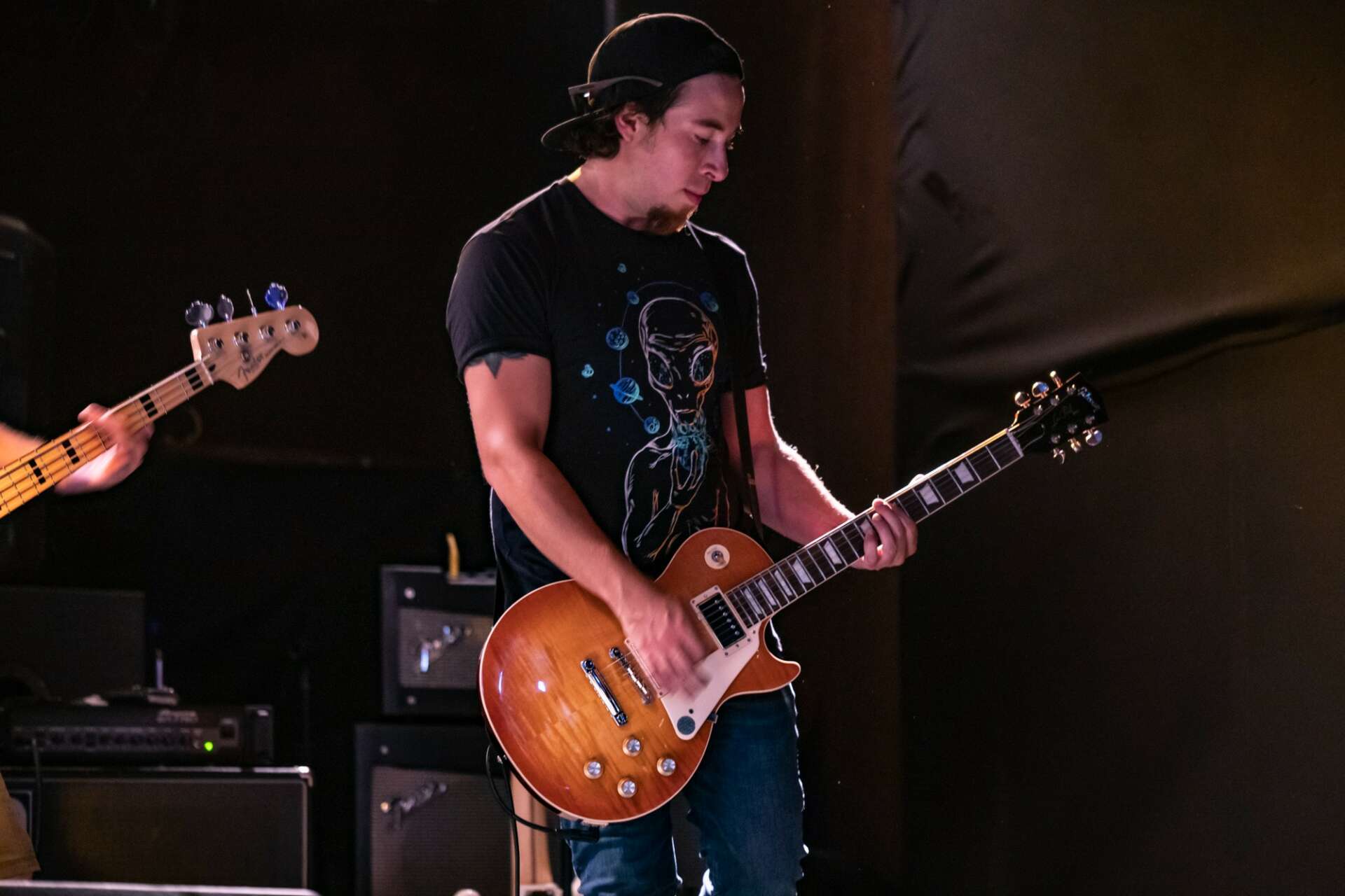 Studying music was expensive so even tho I got into the university that I wanted in the career that I wanted I couldn’t study that because we didn’t have the money so I just went for computer science it was something random but that I liked too, I didn’t really play that much those years just with friends and house parties nothing serious, at the end of my career is when I met my wife Christina she is from Minnesota and we decided to move to this state and country. Thats when my love for music came back the music scene its great here so after 2 years I bought my first guitar and amplifier again, I started looking for bands and I started practicing again, I was slower than before but everything was coming back super fast, I finally found what is called a variaty band so just covers and play one venue every night 3 hrs setlist 30 min rest time, it felt amazing to get into stage again, I was extra nervous I didn’t remember ever feeling this way, when I was younger I was sure of myself and I didn’t care about anything but now it was different, we played for a full year until covid hit and the band dissolved and I had the same problem than before covers dont make me happy I was writting again my own songs so I decided to start my own band HardRock called RestlessMob it took me almost a year to find the right musicians its hard when you dont have any connections but I made it we’ve been together for almost a year now and wrote 10 songs at least and we keep writing more we are fully book until June and even tho we are still trying to make some money from this we love what we do and we hope that we can get big at some point but for now we are step by step getting more people interested in our shows selling merch, and getting our website updated, I am also on instagram trying to position myself as a session player and touring guitarist I love rock but I also love music in general I like playing pop, country and different genres so I would love to start contributing in others people music.